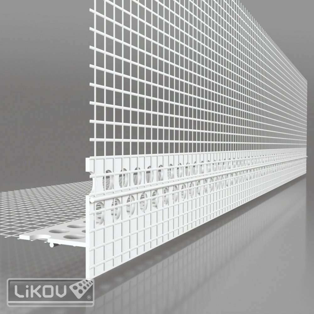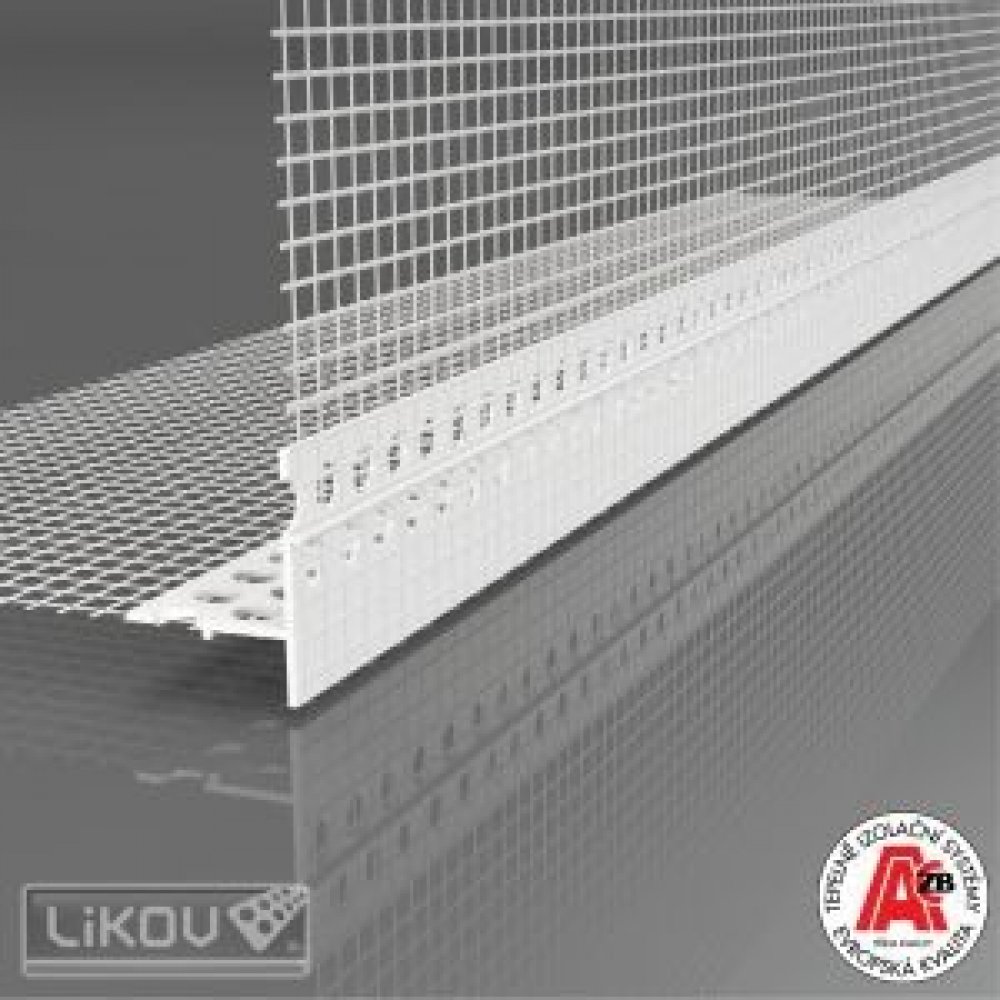 LTU okenní profil s nepřiznanou – podomítkovou okapnicí a sklovláknitou výztužnou tkaninou pro začištění omítky a zajištění svodu vody na horním ostění stavebních otvorů v kontaktním zateplovacím systému – ETICS. LTU