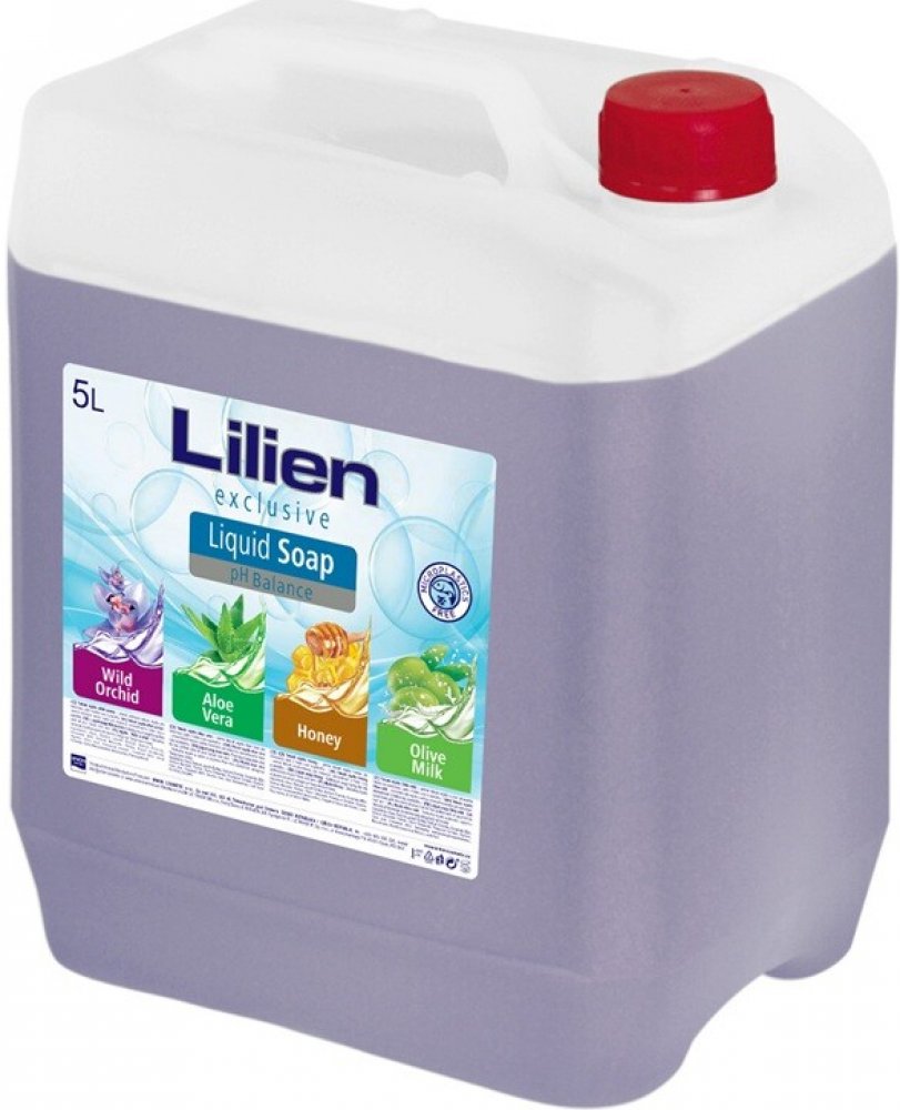 Lilien tekuté mýdlo Orchidej jemně čistí pokožku, zanechává ji hebkou a provoněnou elegantní vůní orchideje. Dopřejte si každodenní hygienu s nádechem elegance díky tekutému mýdlu Lilien s vůní orchideje — ideální volba pro domácnosti i profesionální provozy, kde je kladen důraz na čistotu i příjemný pocit po umytí. Šetrné a účinné mytí – mýdlo spolehlivě odstraňuje nečistoty a zároveň respektuje přirozenou rovnováhu pokožky. Jemná květinová vůně orchideje – lehké, elegantní aroma zanechává ruce příjemně provoněné a navozuje pocit svěžesti. Hydratovaná a hebká pokožka – díky obsahu glycerinu zůstává pokožka po umytí vláčná, jemná a bez pocitu vysušení. Velké balení pro dlouhodobé použití – praktické balení 5000 ml je ideální pro časté používání v domácnostech, kancelářích, školách i gastro provozech.