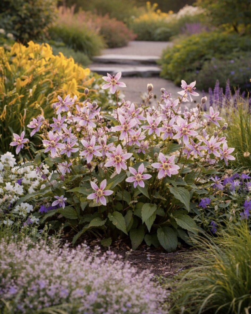 Liliovka srstnatá (Tricyrtis hirta) je fascinující trvalka pocházející z Japonska, která zaujme svými netradičními květy. Ty mají jemné bílé až světle fialové okvětní lístky s tmavě fialovými skvrnami, které připomínají květy orchideje. Rostlina dorůstá výšky 50 až 80 cm a její exotický vzhled ji činí atraktivní volbou pro stinné záhony nebo podrosty pod keři a stromy.