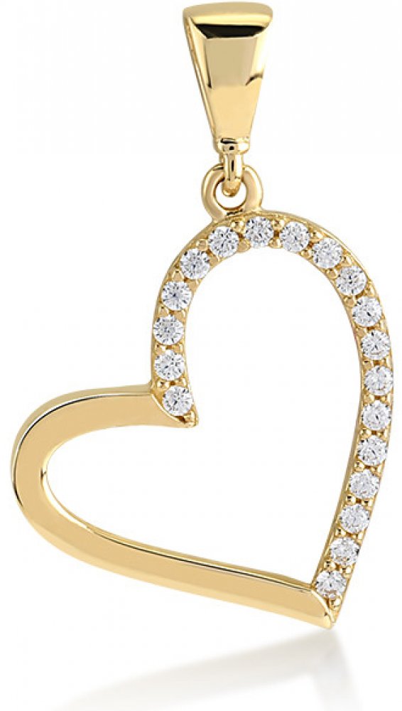 Nádherný asymetrický přívěsek ve tvaru srdce, který je vyrobený ze žlutého 14kt zlata. Přívěsek je z poloviny hladký ve vysokém lesku a větší část je zdobena třpytivými zirkony, které jsou bezpečně vsazeny do malých krapen, tzv. zrnek. Toto moderní srdíčko bude jistě vhodným dárkem pro Vaši milovanou. Udělejte radost sobě, nebo svým nejbližším tímto nádherným šperkem.
