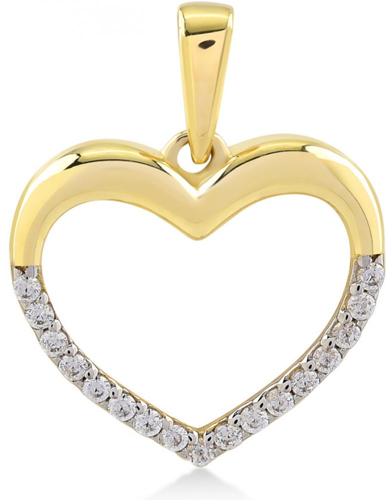 Nádherný přívěsek vyrobený ze žlutého 14kt zlata ve tvaru romantického srdce. Přívěsek je v dolní polovině zdobený čirými zirkony, které šperk rozzáří oslnivým třpytem. Zirkony jsou v těle šperku pečlivě uchyceny za pomocí krapnového osazení, které kameny chrání před nechtěnou ztrátou. Hladký povrch a vysoký lesk zajišťují šperku dokonalý vzhled, který na první pohled zaujme. Skvělý tip na dárek z...