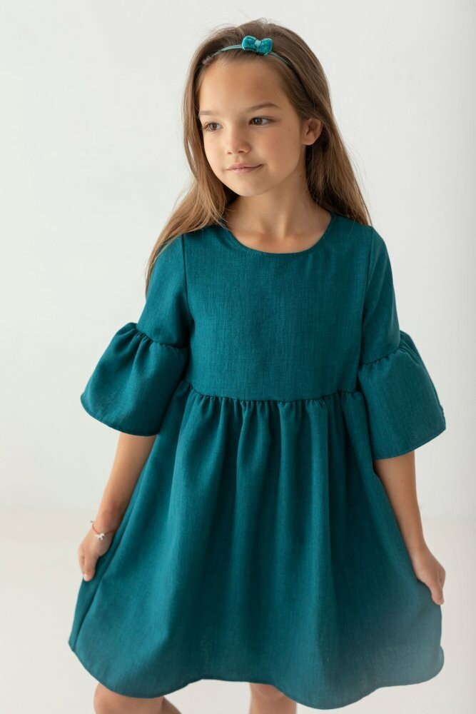 Dětské boho šaty v tmavě zelené barvě jsou navrženy s důrazem na maximální pohodlí a svobodu pohybu. Volný střih v oblasti pasu a měkký materiál zaručují, že se vaše malá slečna bude cítit dobře po celý den – ať už na rodinné oslavě, ve školce nebo při letní procházce.