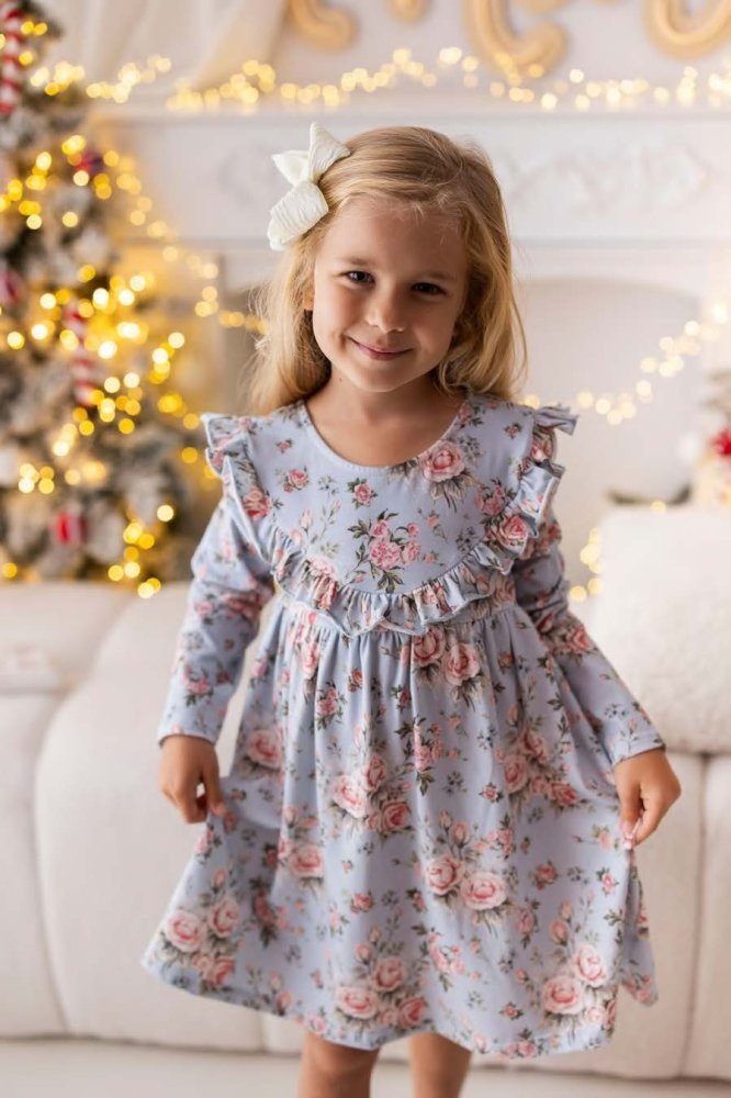 Tyto nádherné světle modré šaty s květinovým vzorem růžiček jsou navrženy pro malé princezny, které chtějí vypadat stylově a roztomile zároveň.