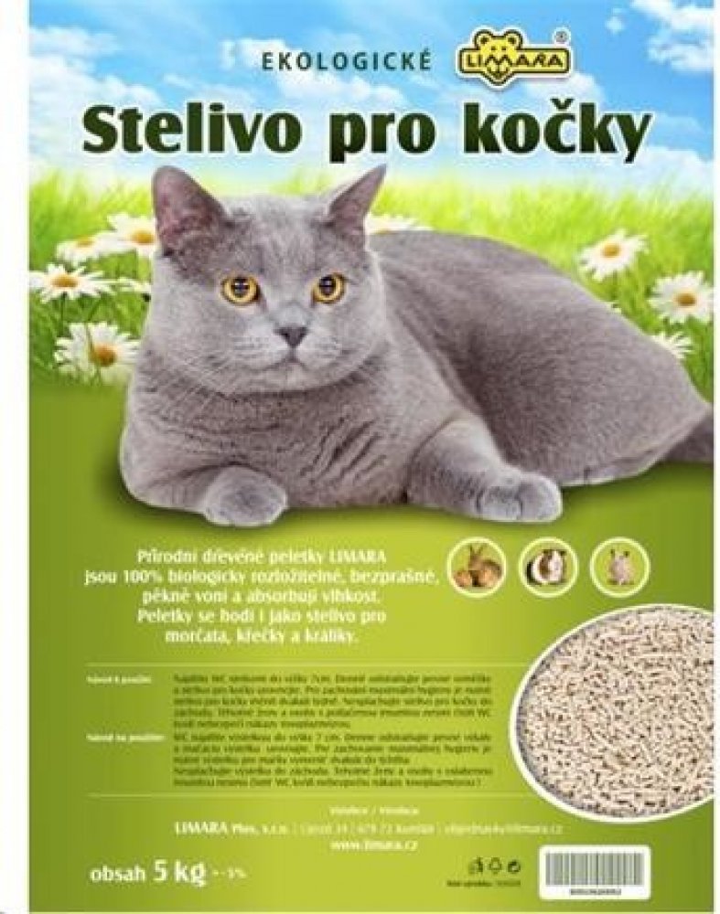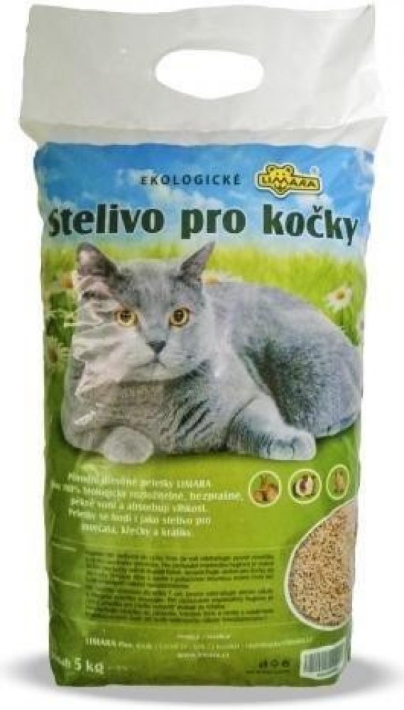 LIMARA Stelivo pro kočky 5kg - Přírodní dřevěné peletky 100% biologicky rozložitelné, bezprašné, pěkně voní a absorbují vlhkost. - Lze použít i jako stelivo pro morčata, křečky a králíky.