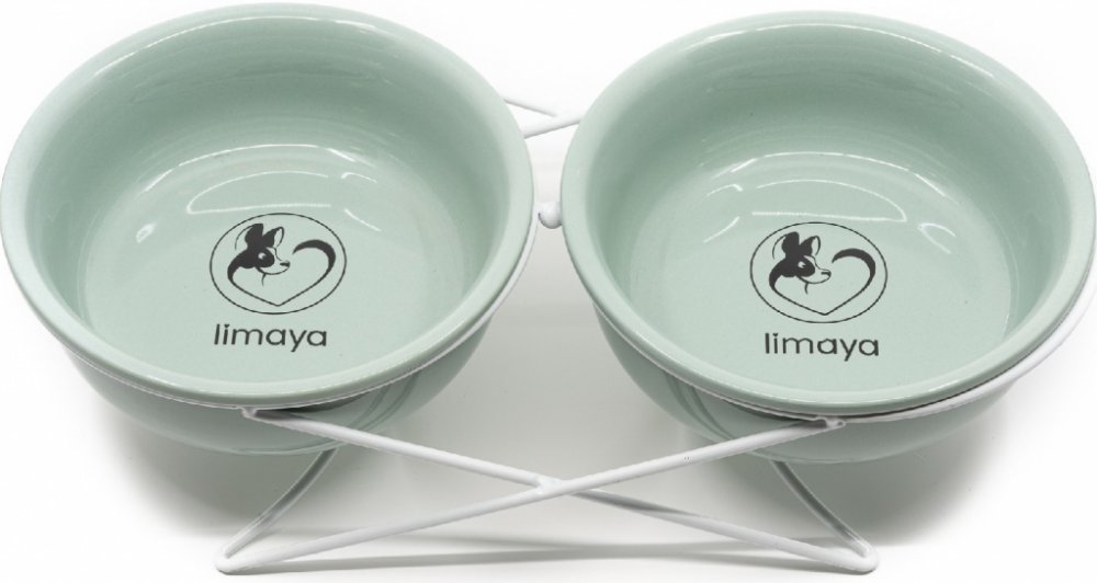 Limaya keramická dvojmiska s kovovým podstavcem pro psy a kočky světle zelená 15 cm.