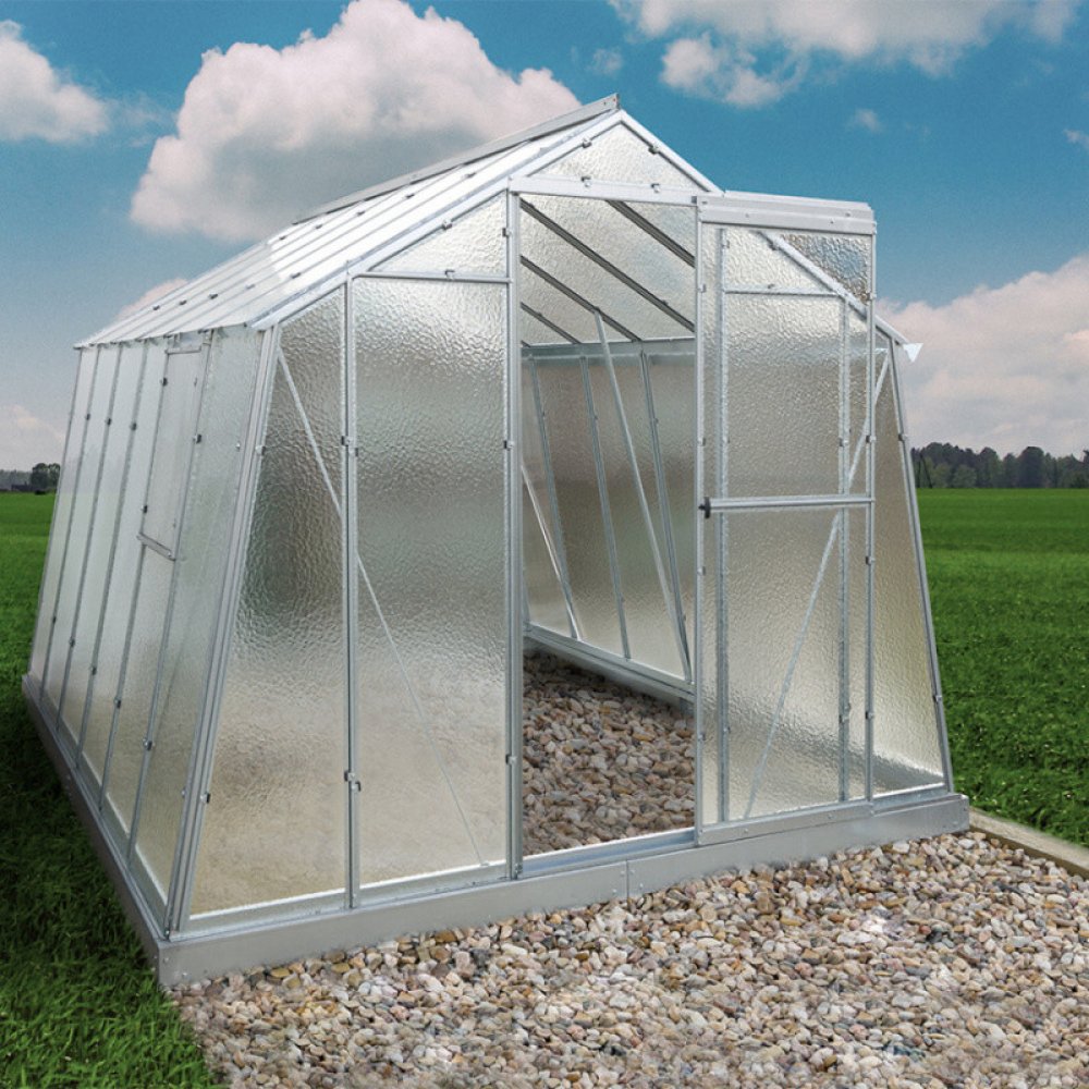 Základní ocelový skleník, který lze postavit bez podezdívky, je ideálním řešením pro začínající pěstitele, kterým udělá radost díky své cenové dostupnosti, relativně jednoduché instalaci a možnosti zvolit materiál zasklení.