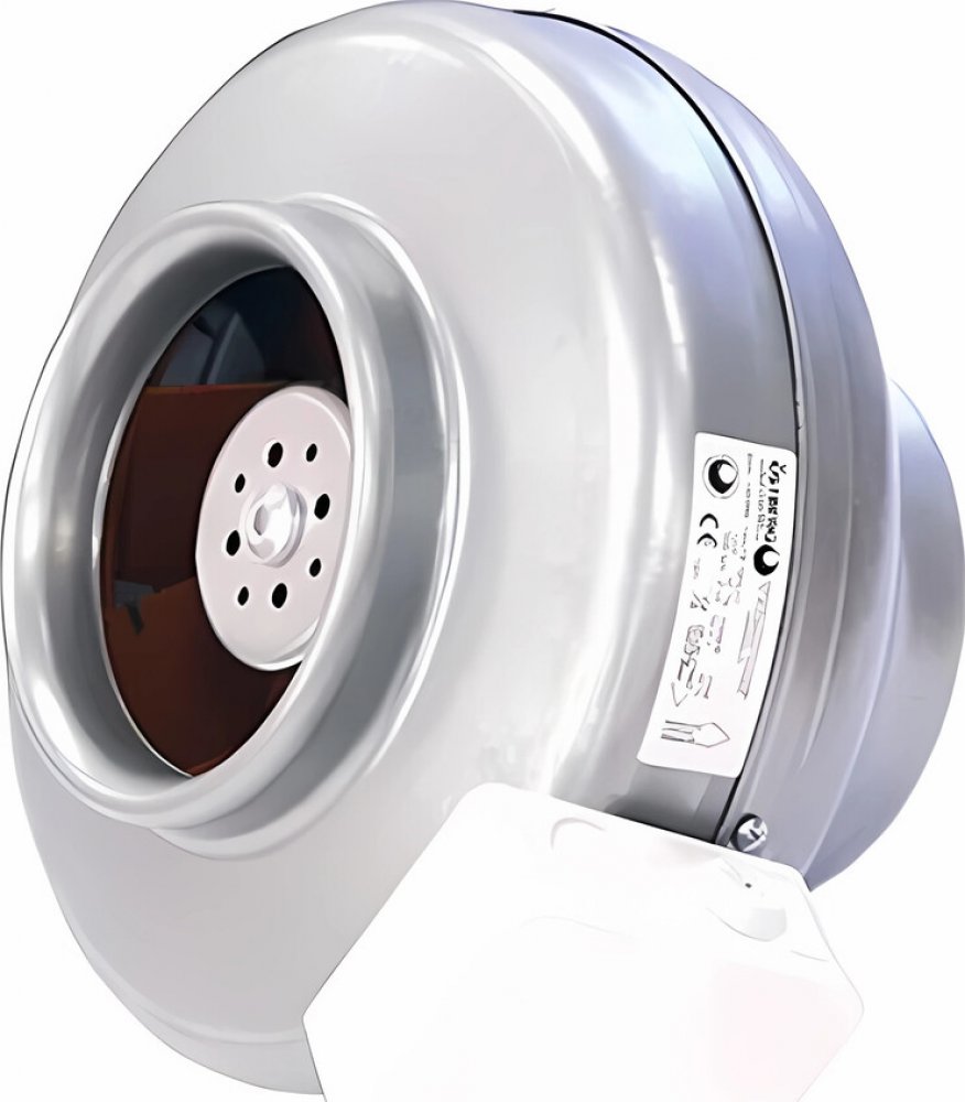 Úsporný potrubní ventilátor - ⌀ 125 mm (průměr potrubí), radiální konstrukce, kuličková ložiska, max. průtok 698 m3/h, příkon 105 W, krytí IP 44, EC motor, plášť z pozink. oceli, provedení se zvýšeným průtokem, lze regulovat (napěťově), hlučnost 52 dB/A, ochrana proti přehřátí, proud 0,86 A, otáčky 3400/min, rozměry 188 × 243 mm (Š×V), hmotnost 2,6 kg