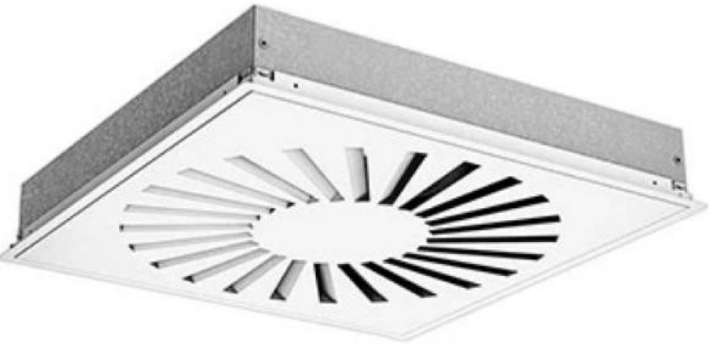 Přívodní vířivý anemostat Versio RS14 315 v barvě RAL 9010. Čtvercový vířivý difuzor s fixními lamelami ve verzi pro přívod vzduchu. Integrovaný vířivý prvek zajistí vysokou indukci a široké dynamické rozpětí. Difuzor je proto ideální pro horizontální přívod velmi chladného vzduchu.