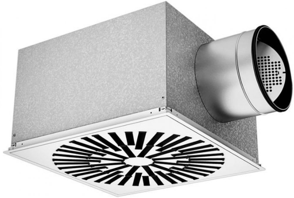 Přívodní vířivý anemostat s plenum boxem Versio RS16 315 v barvě RAL 9010. Čtvercový vířivý difuzor s nastavitelnými lamelami ve verzi pro přívod vzduchu. Integrovaný vířivý prvek zajistí vysokou indukci a široké dynamické rozpětí. Difuzor je proto ideální pro horizontální přívod velmi chladného vzduchu.