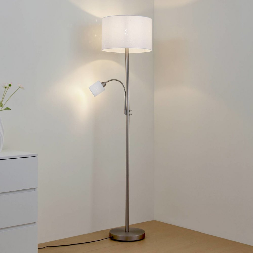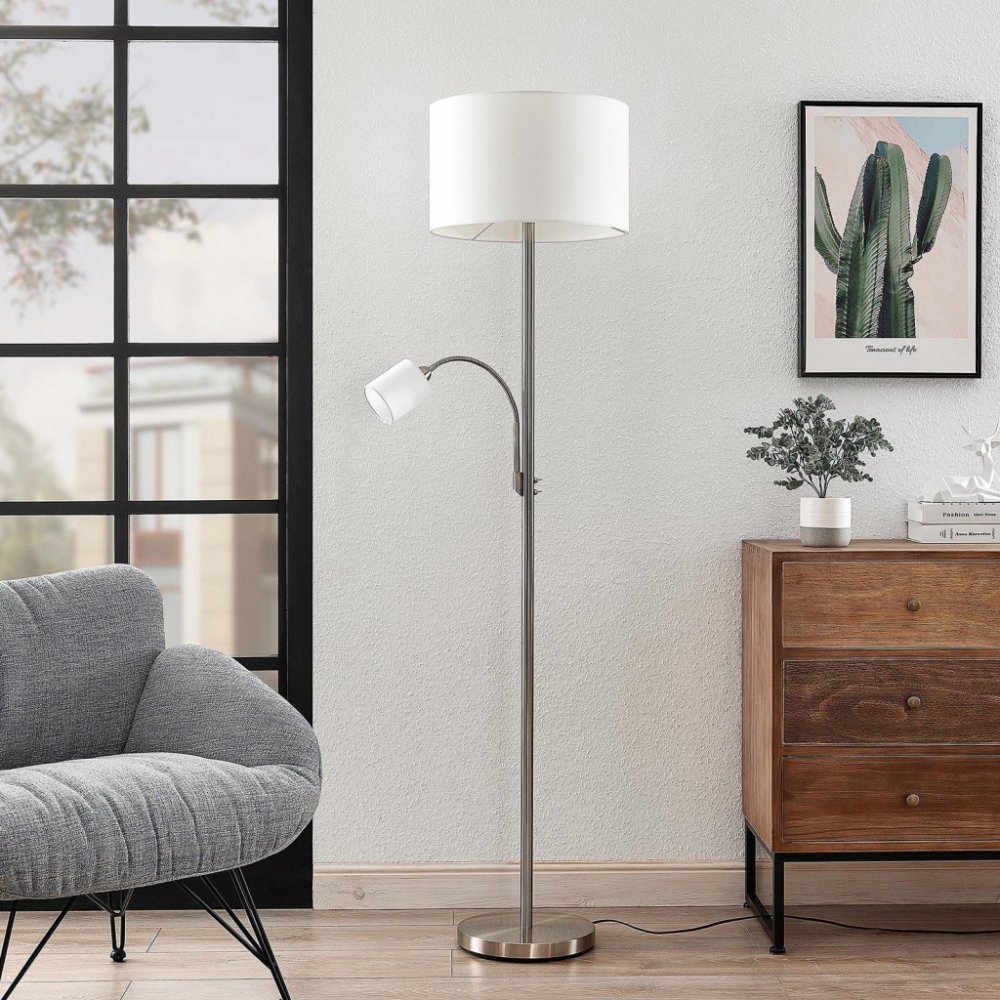 Bílá stojací lampa Jaileen s látkovým stínidlem a lampou na čtení Objevte látkovou stojací lampu Jaileen, symbiózu elegance a funkčnosti, která dodá každému obývacímu pokoji nebo ložnici zvláštní nádech. Moderní design ve spojení se skandinávskou jednoduchostí vytváří atmosféru, která vybízí k odpočinku i soustředění na čtení. Jeho jedinečný design charakterizují stínidla na lampu s malými otvory. Tyto perforované detaily vytvářejí fascinující světelný efekt, který místnost zalévá měkkým a atmosférickým světlem. Ať už jako centrální osvětlovací prvek, nebo jako diskrétní zdroj světla pro útulné večery - Jaileen je obohacením každé místnosti - včetně lampy na čtení na ohebném rameni