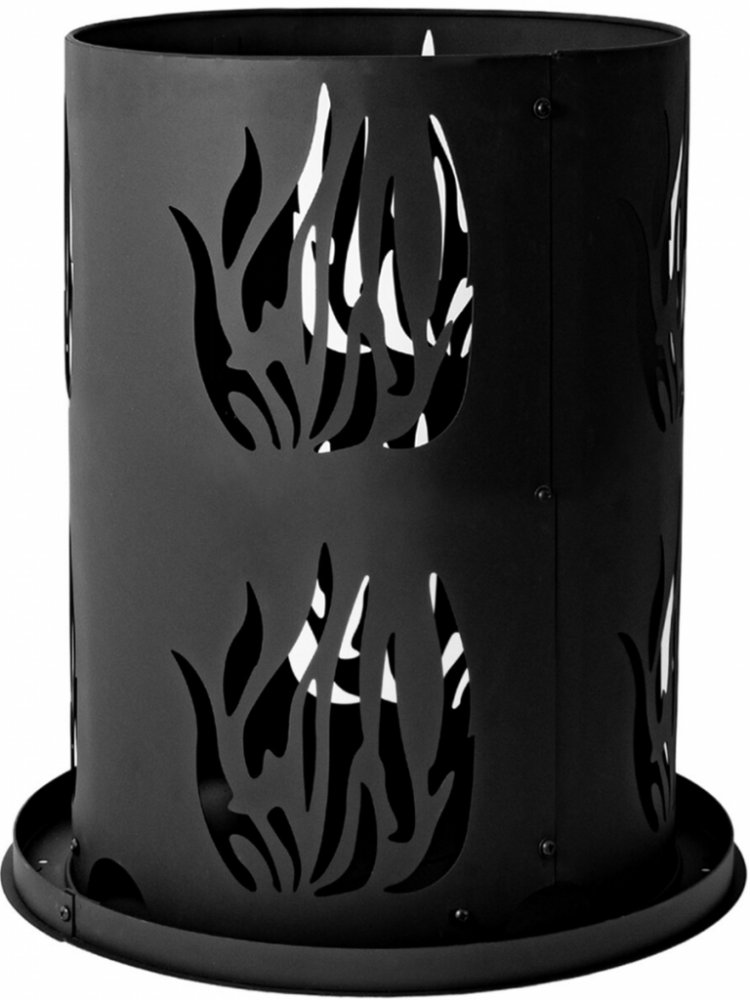 Toto kovové ohniště nabízí nejen efektivní hoření díky ventilaci, ale také vytváří atmosférické osvětlení zásluhou dekorativních otvorů ve tvaru plamene.