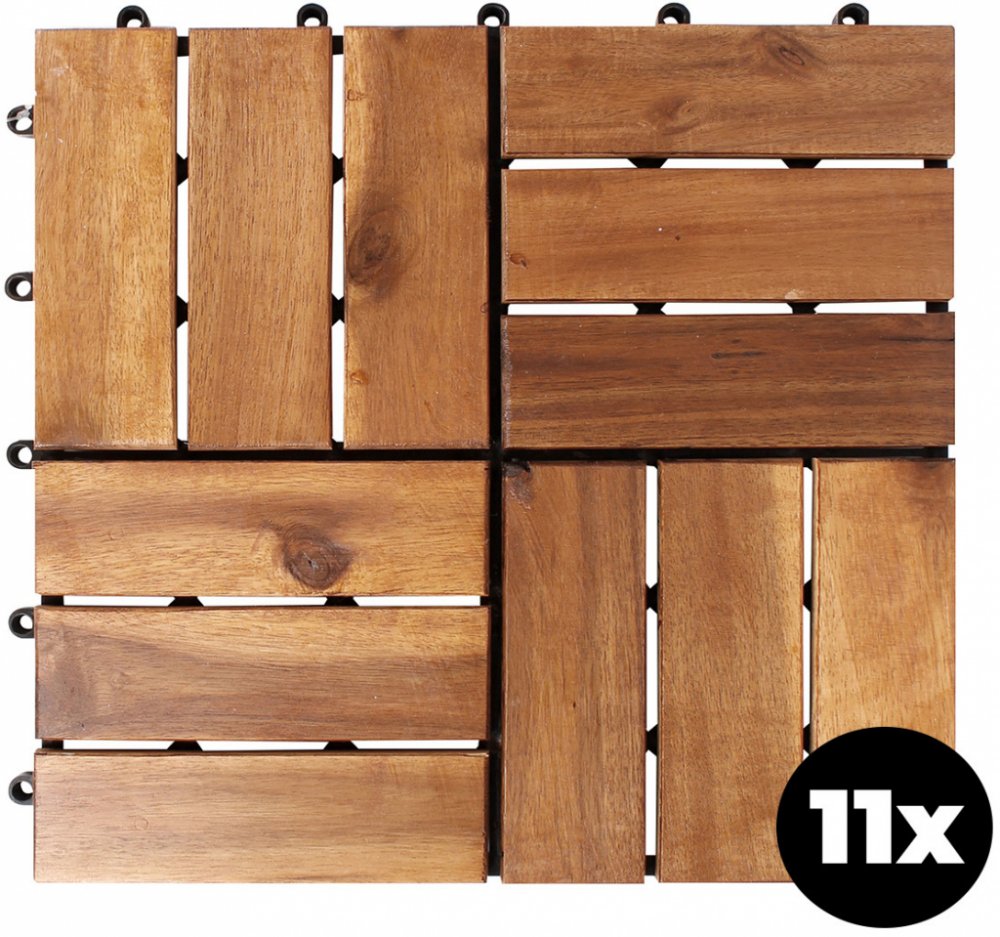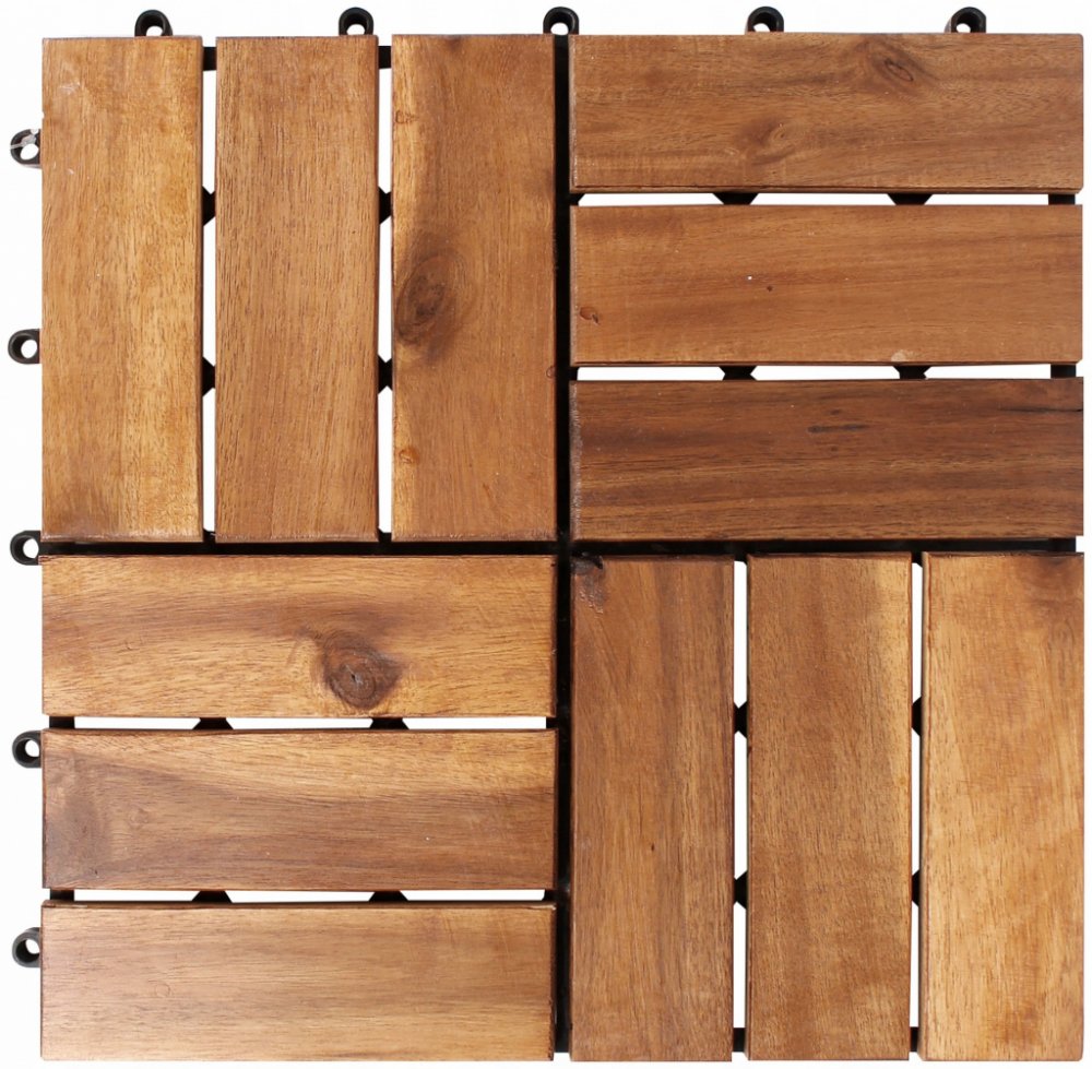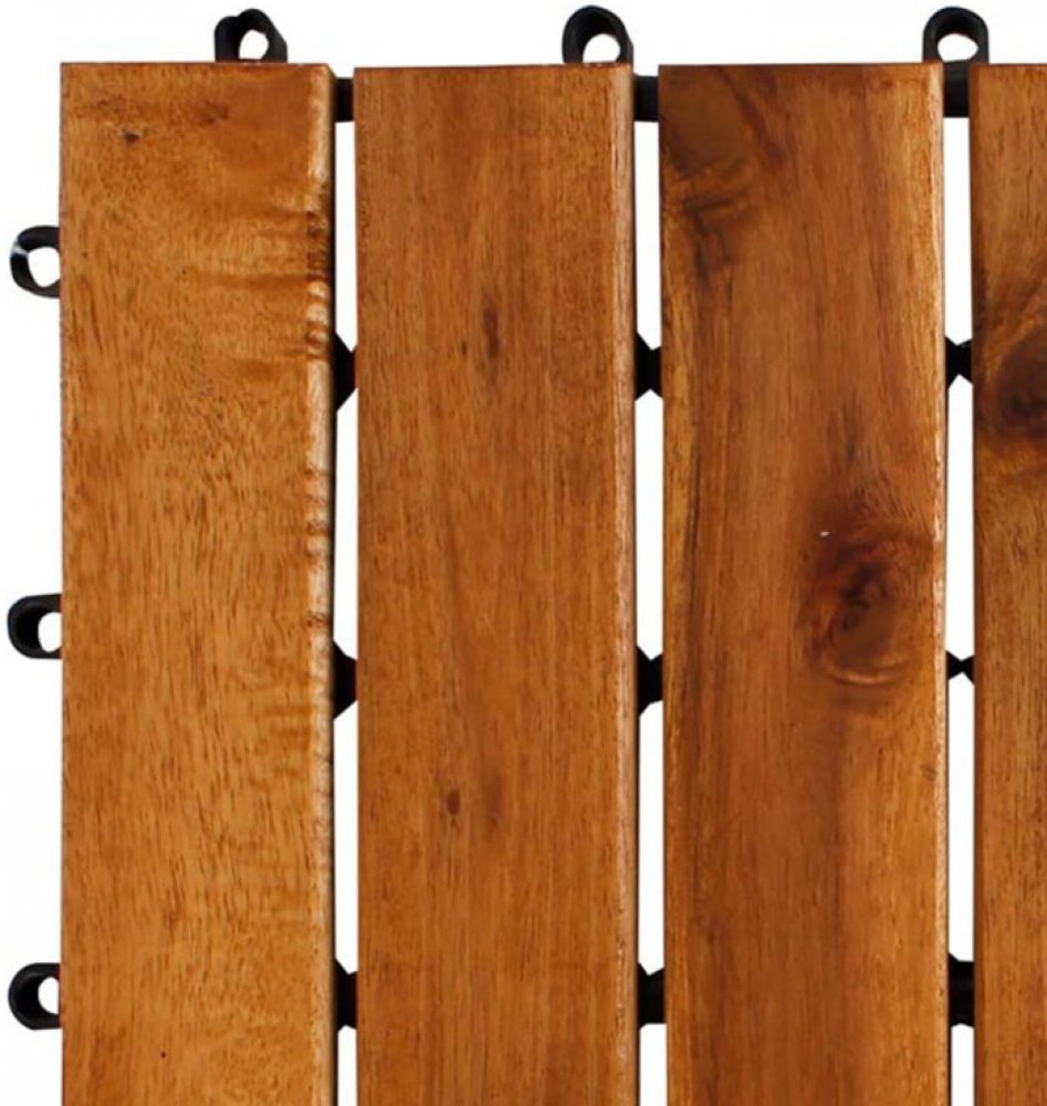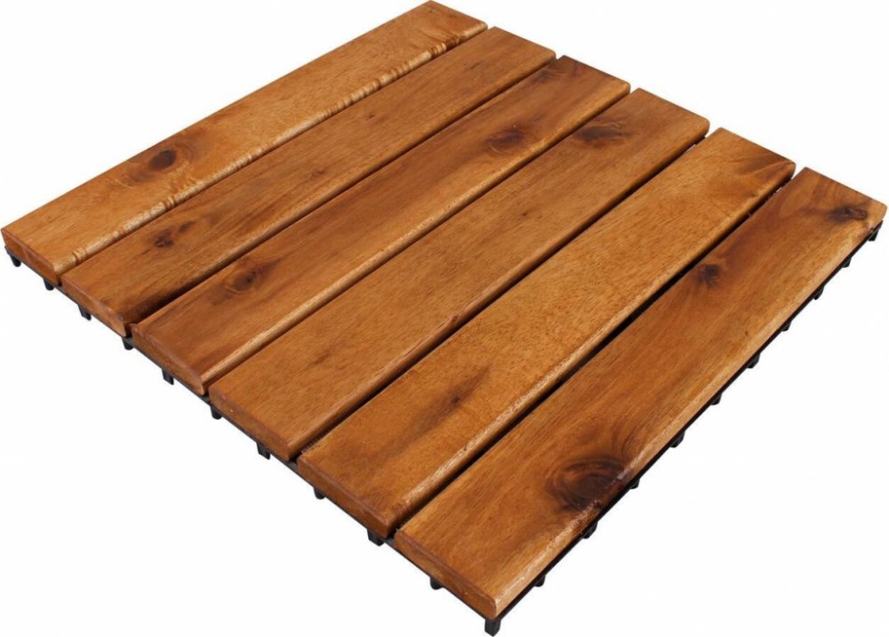 Podlahové dlaždice jsou vyrobené z kvalitního akáciového dřeva, což je tropické tvrdé dřevo, které je odolné proti vlivům počasí a má dlouhou životnost.