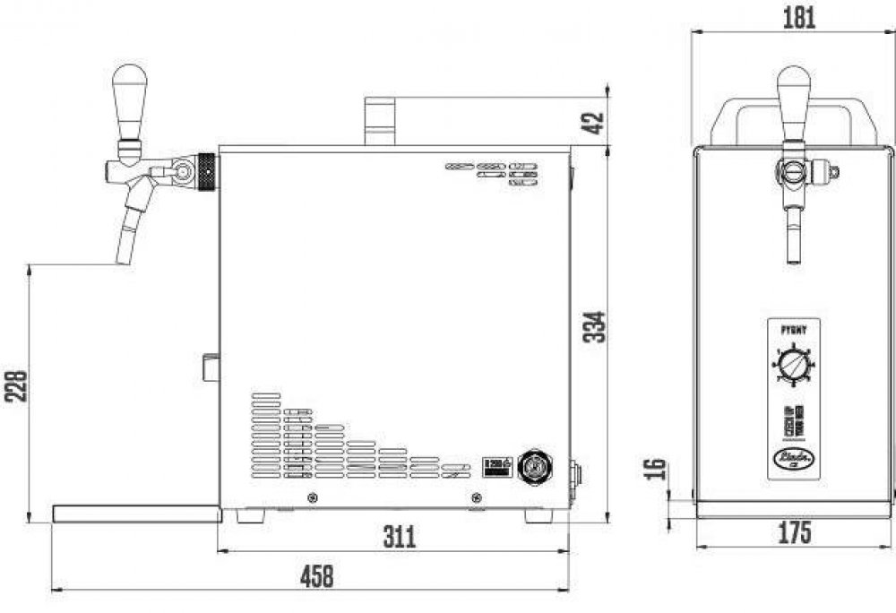 Výčepní zařízení PYGMY 20/K NEW svým výkonem 20-35 l/hod a malými rozměry 167 x 330 x 295 mm tvoří špičku mezi domácími stolními chladiči.