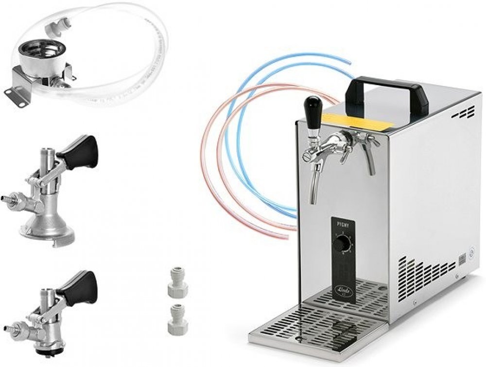 PYGMY 25/K NEW Green Line je špičkové výčepní zařízení s vestavěným vzduchovým kompresorem, ideální pro domácí použití, menší zahradní oslavy nebo setkání s přáteli. V kompaktním provedení nabízí výkon, na který se můžete spolehnout – a to s úsporou energie i jistotou vždy dokonale vychlazeného piva.
