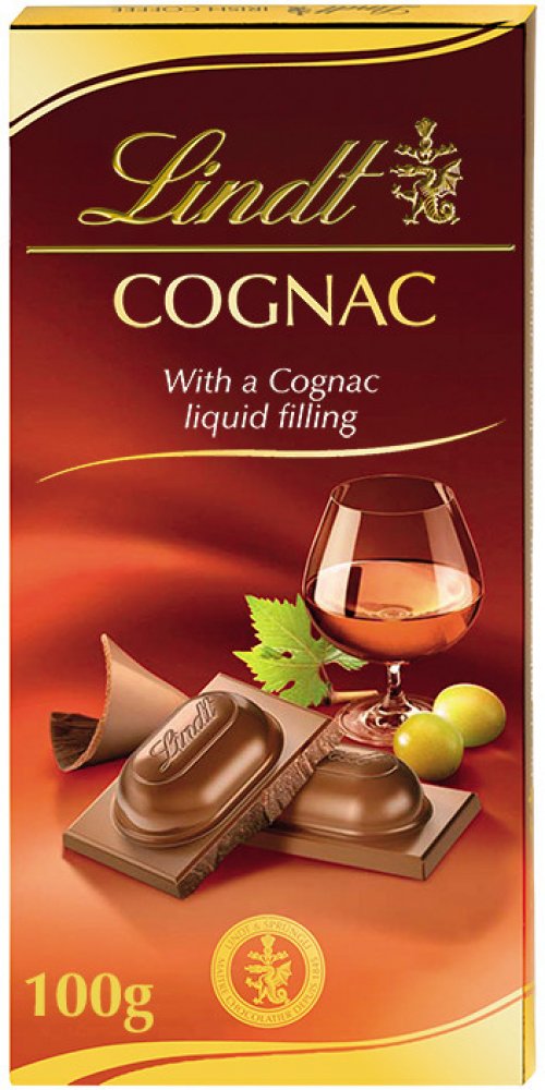 Lindt ALKOHOL Mléčná s koňakovou náplní, 100 g