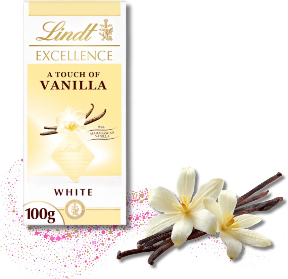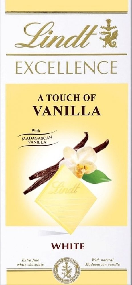 Lindt EXCELLENCE A Touch Of Vanilla je tabulka naší delikátně krémové bílé čokolády s pravou vanilkou. Ušlechtilá bílá čokoláda s plným aroma madagaskarské vanilky. Dokonalý výtvor Mistrů čokolády Lindt.