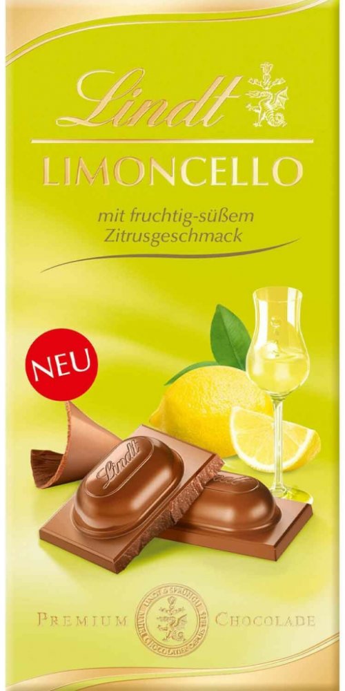 Italský styl v každé tyčince: tabulka mléčné čokolády Lindt Limoncello kombinuje jemně se rozplývající mléčnou čokoládu s krémovou, alkoholovou náplní limoncello.