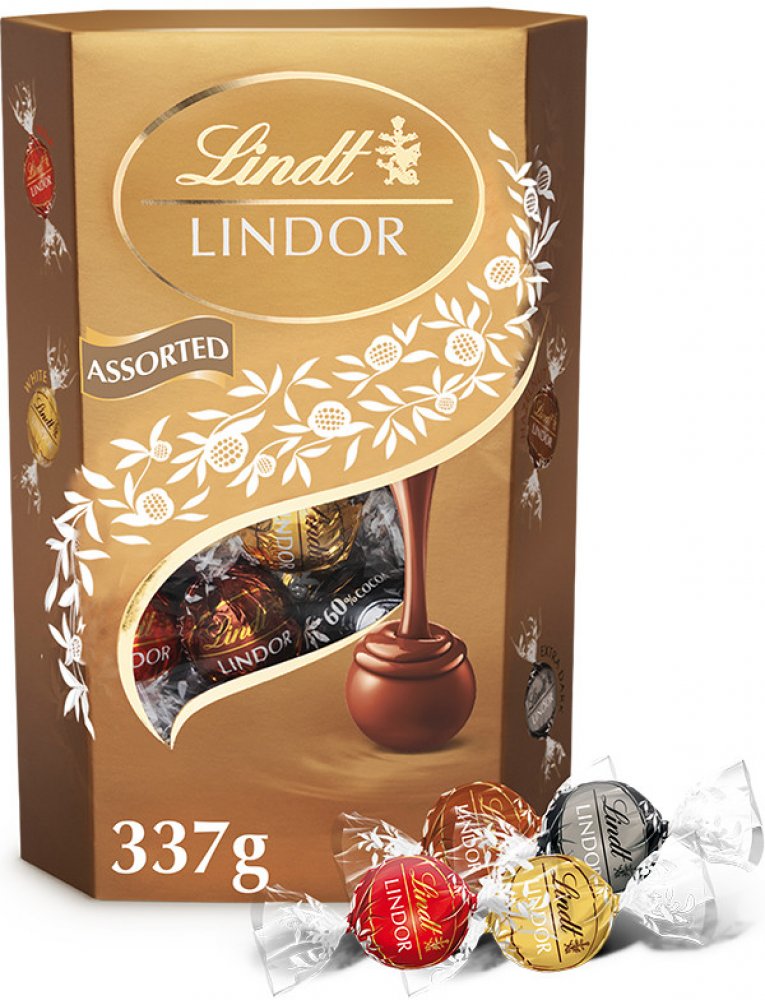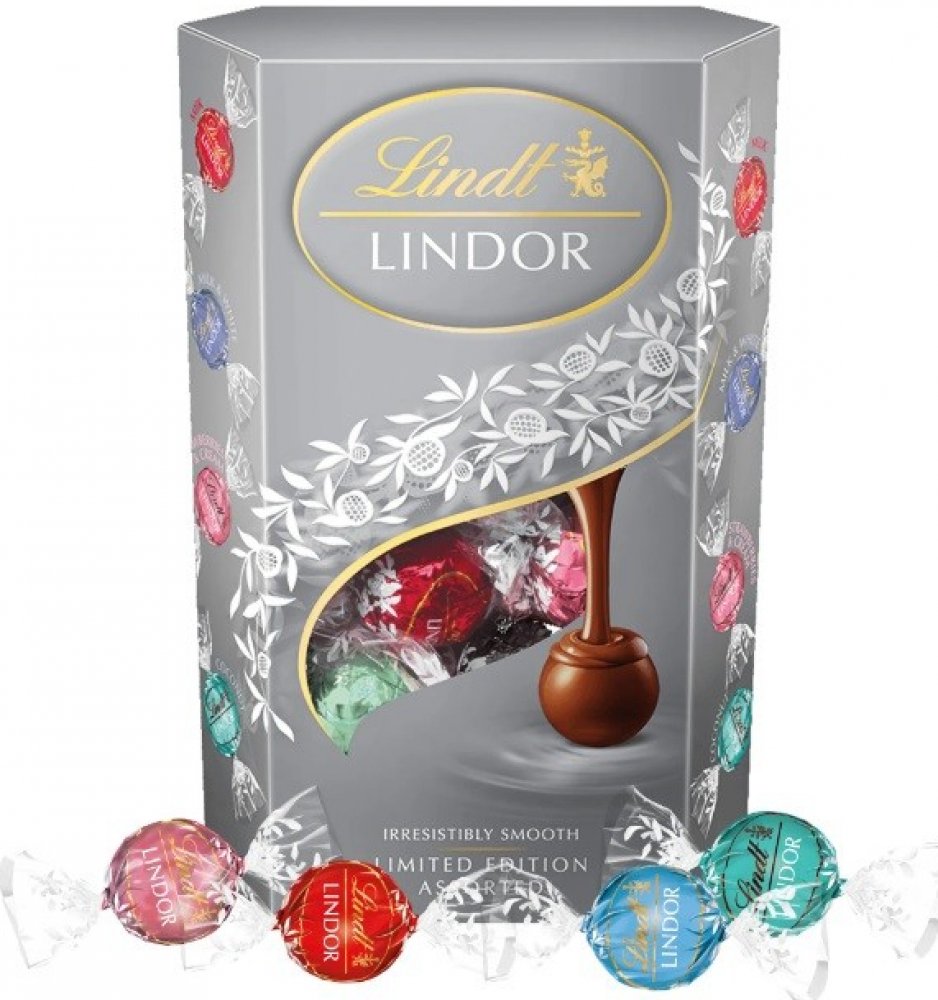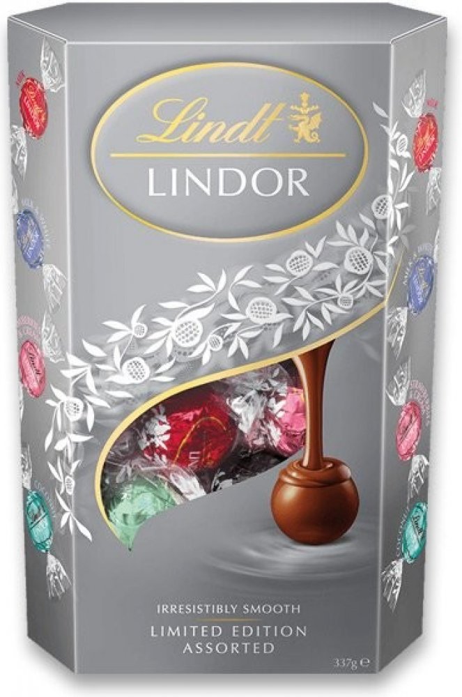 Dopřejte si lahodné čokoládové pralinky Lindor Assorted z lahodné mléčné nebo hořké čokolády Lindt s neodolatelně jemnou čokoládovou náplní. To pravé, když si chcete dopřát chvilku pro sebe, vychutnat chvíle s přáteli nebo obdarovat své blízké. Limitovaná edice v stříbrné barvě v různých příchutích! Obsah 337 g. Víte, že první zmínka o pralince se objevila v sedmnáctém století? Podle legendy lahod...