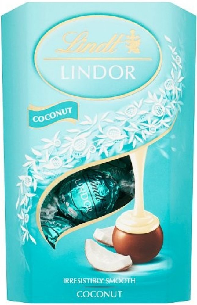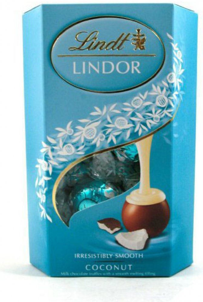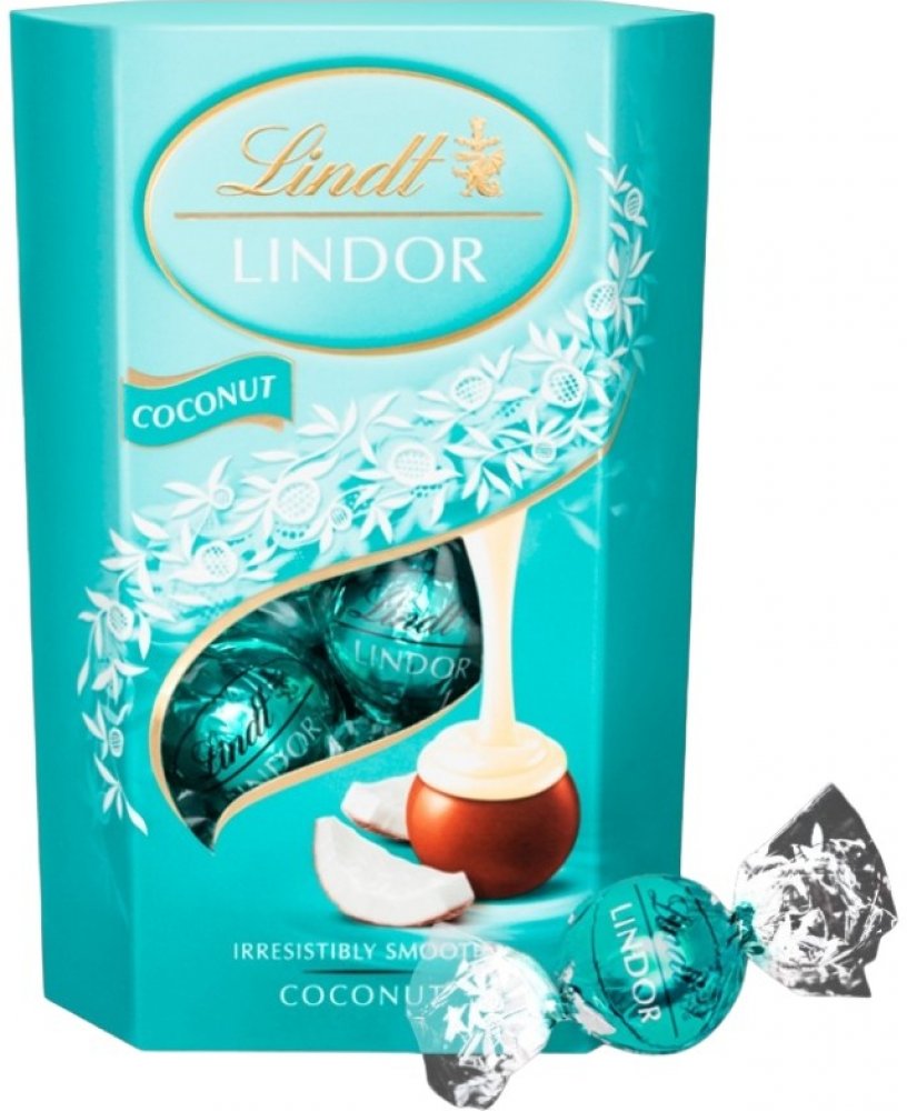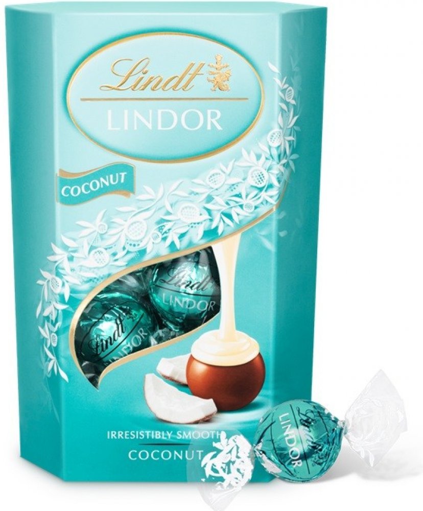 Lindt Lindor Coconut 200g má křupavou čokoládovou skořápku a jemnou, rozplývající se náplň: