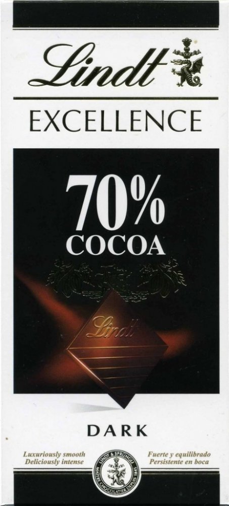 EXCELLENCE 70 % Cocoa je vyvážená tmavá čokoláda s delikátní vůní a lahodnou chutí. Má silnou, ale ne příliš intenzivní kakaovou chuť s jemnými ovocnými a květinovými podtóny a lehkým dotekem přírodní vanilky. Tmavá čokoláda s plnou chutí, mistrovsky vyvážená s hořkosladkými podtóny.
