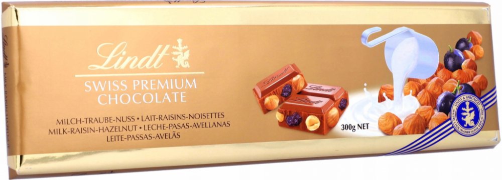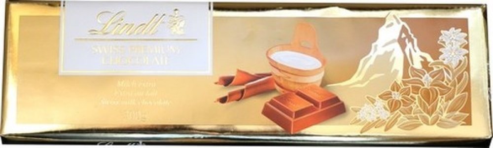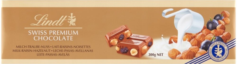 ZÁKONNÝ NÁZEV POTRAVINYŠvýcarská mléčná čokoláda. Obsah kakaové sušiny nejméně 31%.SLOŽENÍcukr, kakaové máslo, sušené plnotučné MLÉKO, kakaová hmota, laktóza, sušené odstředěné MLÉKO, emulgátor: SOJOVÝ lecitin, extrakt z JEČNÉHO sladu, aroma.ALERGENYMléko a výrobky z něj (včetně laktózy), MŮŽE OBSAHOVAT: Skořápkové plody a výrobky z nichVÝŽIVOVÉ ÚDAJE/JEDNOTKA2242 kJ /537 kcal