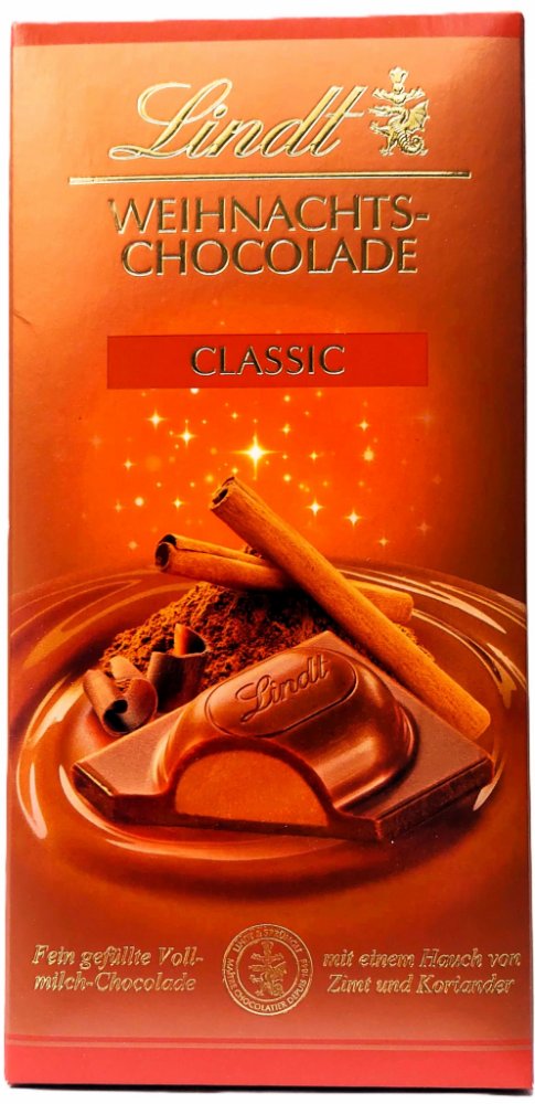 Složení: Složení: cukr, kakaové máslo, OŘECHY (10%), sušené plnotučné MLÉKO, kakaová hmota, hroznový cukr, palmový olej, mléčný cukr, sušené odstředěné MLÉKO, emulgátor (SÓJOVÝ lecitin), extrakt z ječného sladu, příchutě, skořice, koriandr. Může obsahovat Mandle a jiné OŘECHY. Nutriční hodnoty na 100 g: Energetická hodnota: 583,00 kilokalorií (kcal) Energetická hodnota: 2 430,00 kilojoulů (kJ) Tuk: 38,00 Tuky, z toho nasycené mastné kyseliny: 18,00 Sacharidy: 53,00 Sacharidy, z toho cukr: 50,00 Bílkoviny: 6,00 Sůl: 0,17