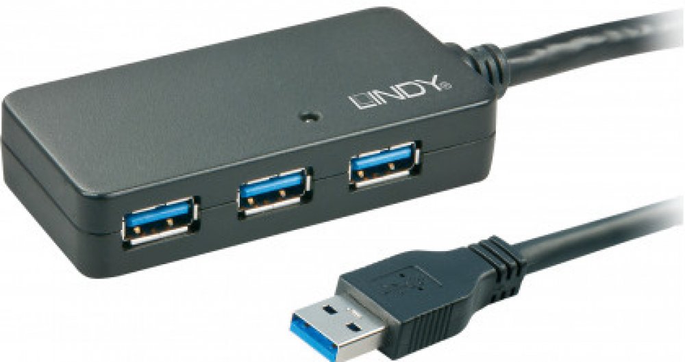 Lindy USB Active Extension Hub Pro je vysoce výkonný rozbočovač s aktivním kabelem, který umožňuje přístup ke čtyřem periferním zařízením USB 3.0 SuperSpeed na velké vzdálenosti. Díky podpoře přenosu dat rychlostí až 5 Gb/s je tento prodlužovací rozbočovač ideální pro rychlý a spolehlivý přenos velkých objemů dat. Tento rozbočovač je vybaven osvědčenou aktivní technologií a uzamykatelnými konektor...