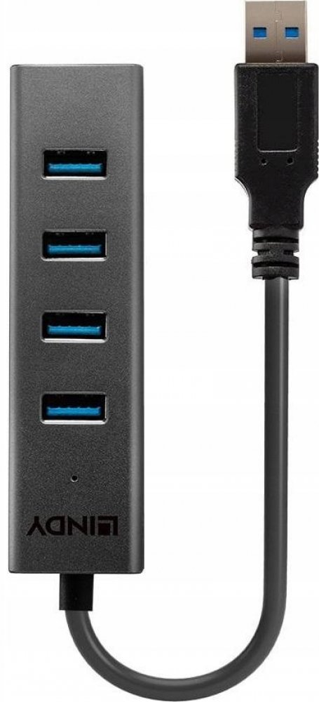 Rozbočovač Lindy 4 Port USB 3.0 poskytuje 4 porty USB typu A SuperSpeed pro připojení periferních zařízení USB k počítači vybavenému rozhraním USB typu A. Rozbočovač je schopen přenášet data rychlostí až 5 Gb/s a je také zpětně kompatibilní s USB 2.0 a 1.1. Rozbočovač je napájen ze sběrnice USB a jeho funkční, stylový design s integrovaným kabelem z něj činí dokonalého společníka pro mobilní zaříz...