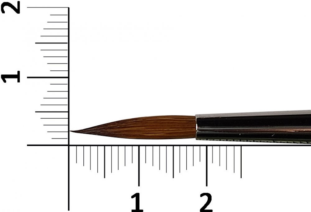 Kulatý štětec ze 100% přírodního vlasu sobola, známé pod jménem Kolinsky, bezešvé niklové kování. Kratká lakovaná rukojeť.