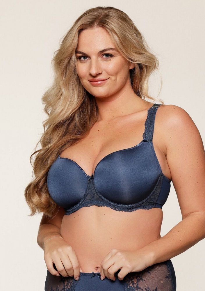 Elegantní podprsenka LingaDore v tmavě modrém odstínu nabízí perfektní kombinaci podpory a pohodlí. Hladké vyztužené košíčky s kosticí vytvářejí přirozeně zaoblený dekolt a poskytují pevnou oporu i při celodenním nošení. Decentní krajkový lem pod prsy dodává modelu ženský a sofistikovaný vzhled. Podprsenka má zapínání na tři háčky se čtyřmi pozicemi a délkově nastavitelná ramínka pro maximální kom...