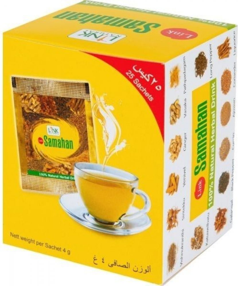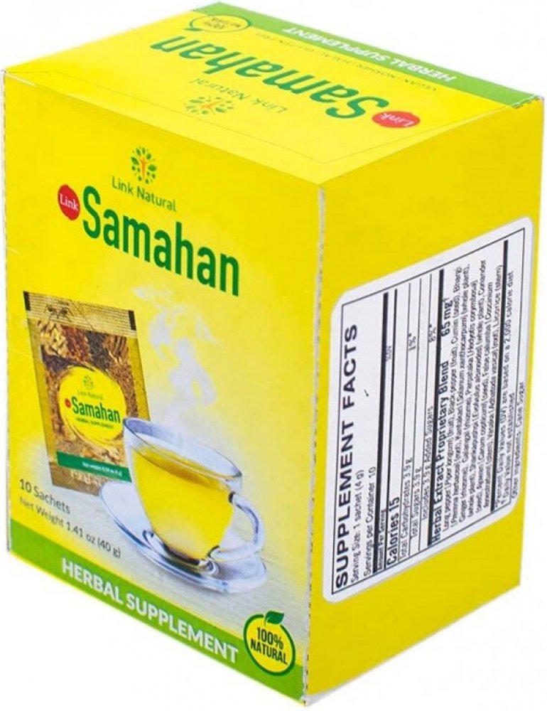 Instantní bylinný nápoj Samahan je prastará léčivá směs ze 14 ájurvédských bylin a koření, mezi kterými převládá zázvor, pepř, koriandr, kmín a lékořice. Kombinace těchto složek vytváří jedinečný koktejl účinný především na posílení imunitního systému.