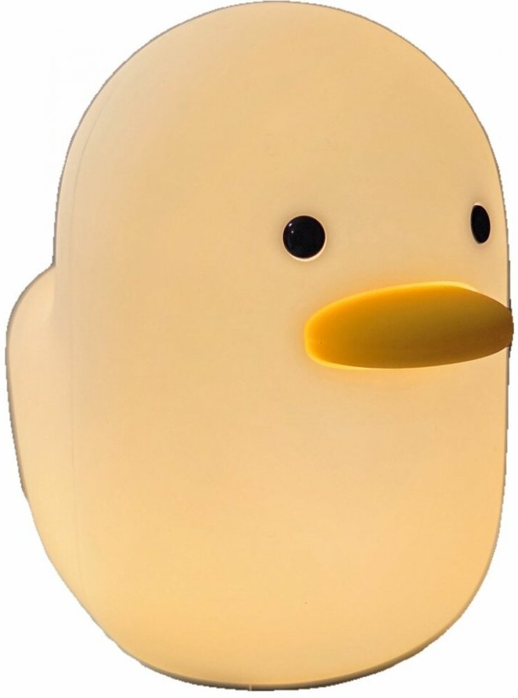 Dětská noční LED nabíjecí lampička ve tvaru kačenky. Vyrobena z certifikovaného, měkkého a na dotek příjemného silikonu bez obsahu BPA, který je bezpečný pro děti. Lampička se zapíná poklepáním, intenzita teplého bílého světla se nastavuje přepínačem (2 úrovně jasu). Struktura materiálu je hladká a měkká, světýlko se nezahřívá, což umožňuje jeho bezpečné umístění i v postýlce. Design je minimalistický a roztomilý. Zvláštní funkcí je přepínač pro nastavení časovače automatického vypnutí po 15 nebo 30 minutách.