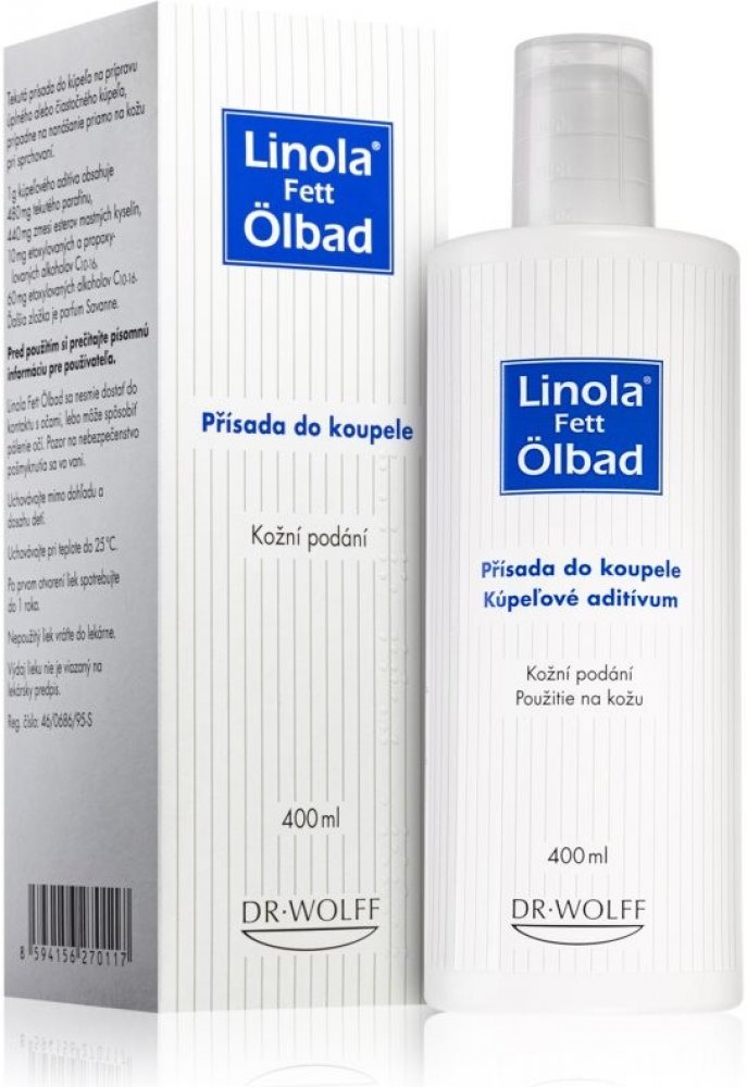 Linola Fett Ölbad je tekutá koupelová přísada (olejová koupel), která pokrývá pokožku olejovým filmem, a tím pomáhá obnovení přirozeného mastného povrchu kůže. Je určena k částečné i plné koupeli.