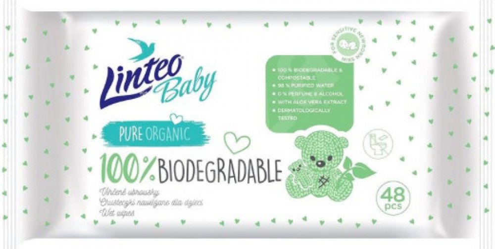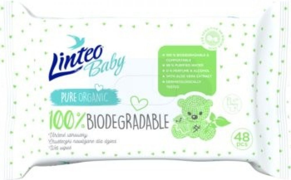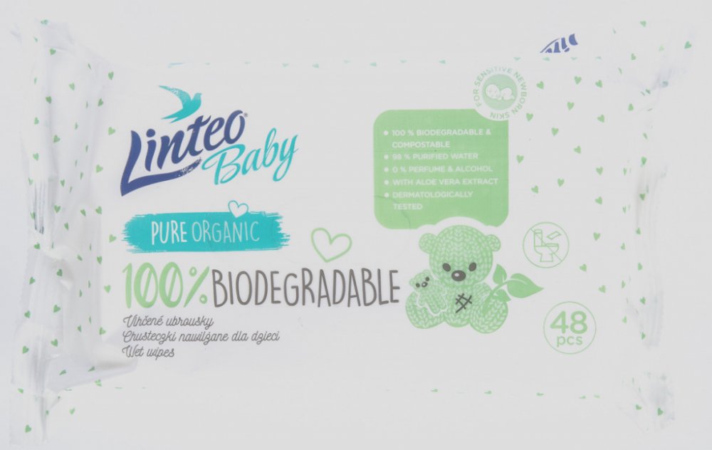 Vlhčené ubrousky Linteo Baby 100% BIODEGRADABLE 48 ks