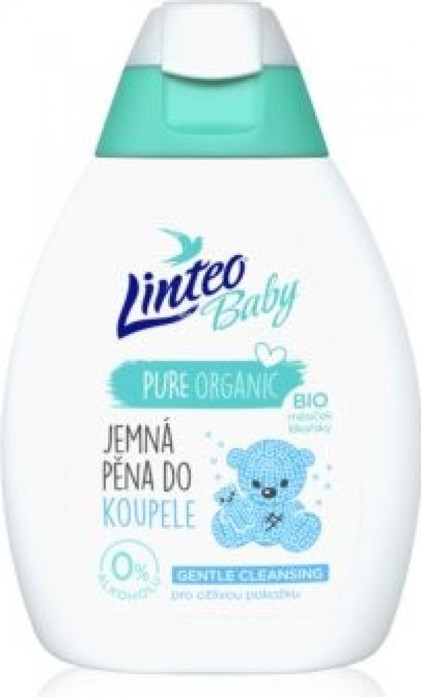 Pěna do koupele LINTEO BABY z nové řady PURE ORGANIC obsahuje certifikovaný extrakt z Bio měsíčku lékařského. Při koupeli zklidňuje, zvláčňuje, regeneruje a jemně čistí pokožku. Vhodná pro citlivou pokožku, 0% alkoholu, dermatologicky testováno.