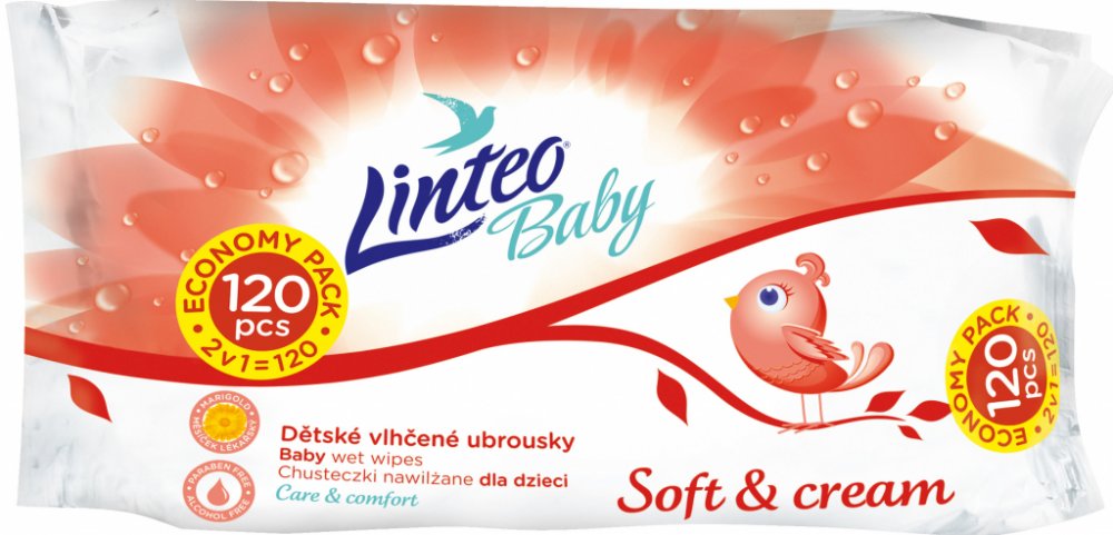 Linteo Baby Soft & Cream vlhčené ubrousky 120 ks