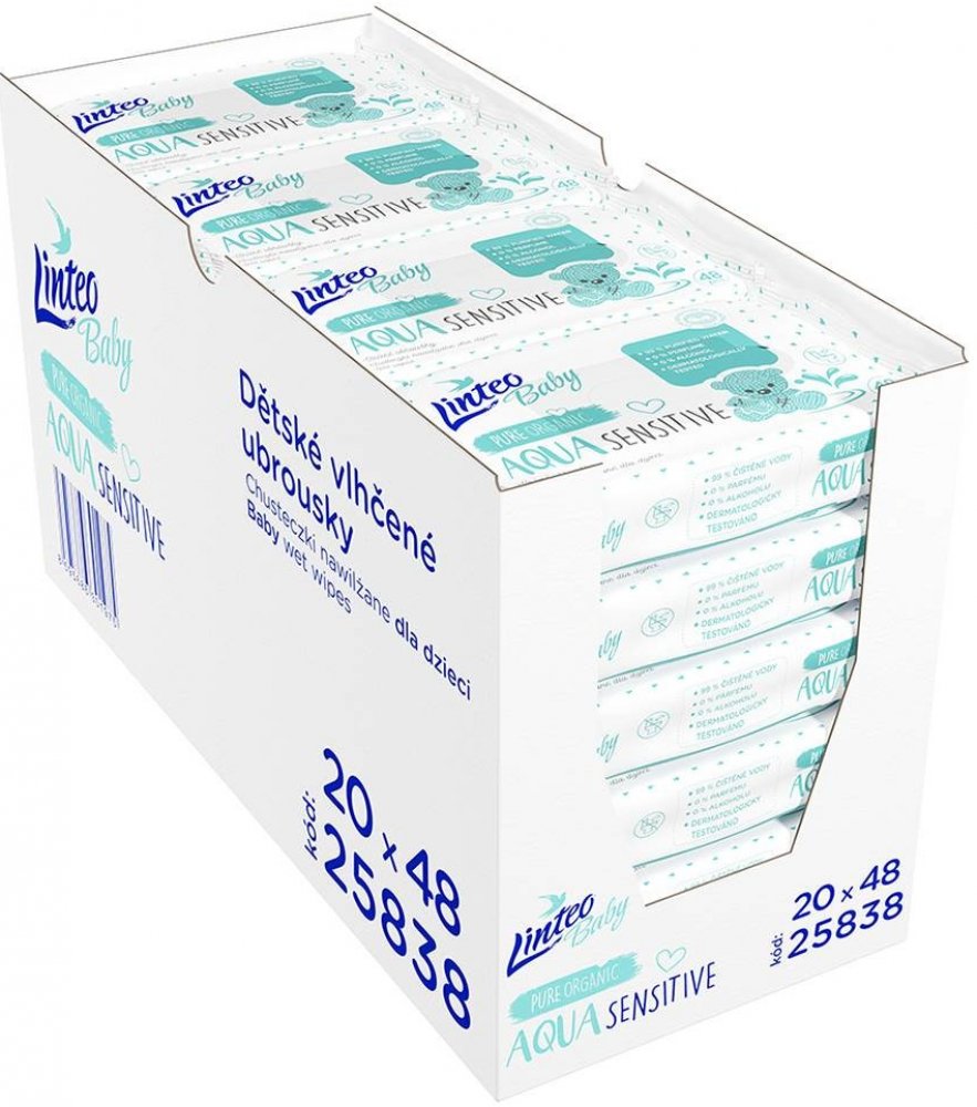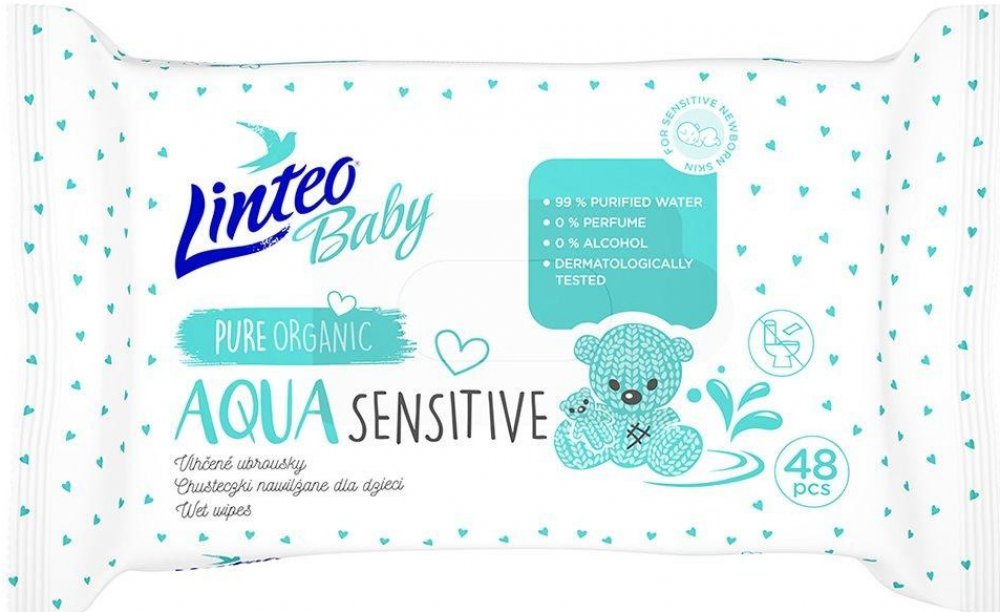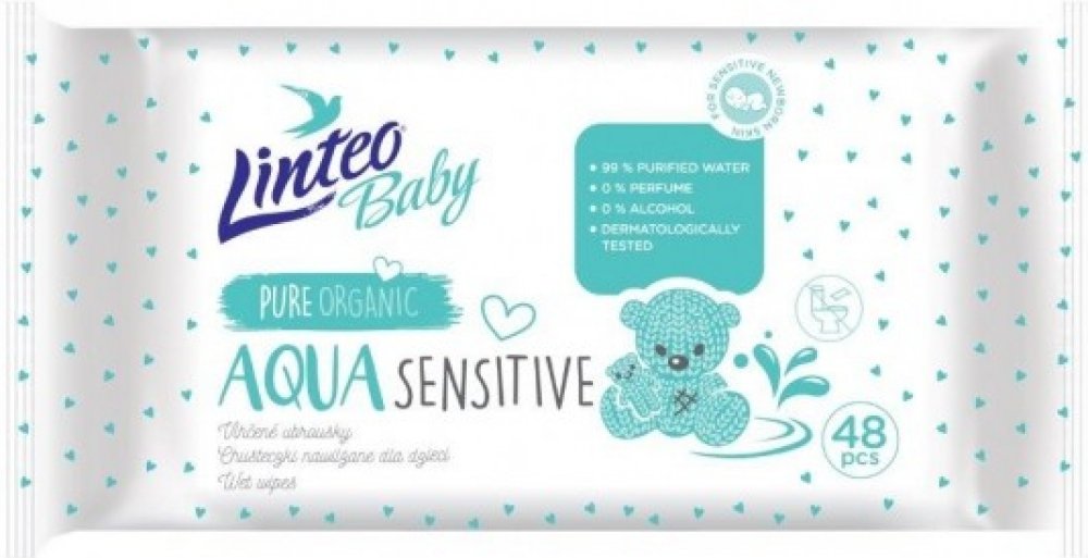 LINTEO BABY Vlhčené ubrousky Aqua sensitive 48 ks