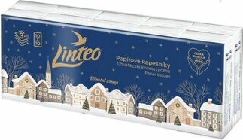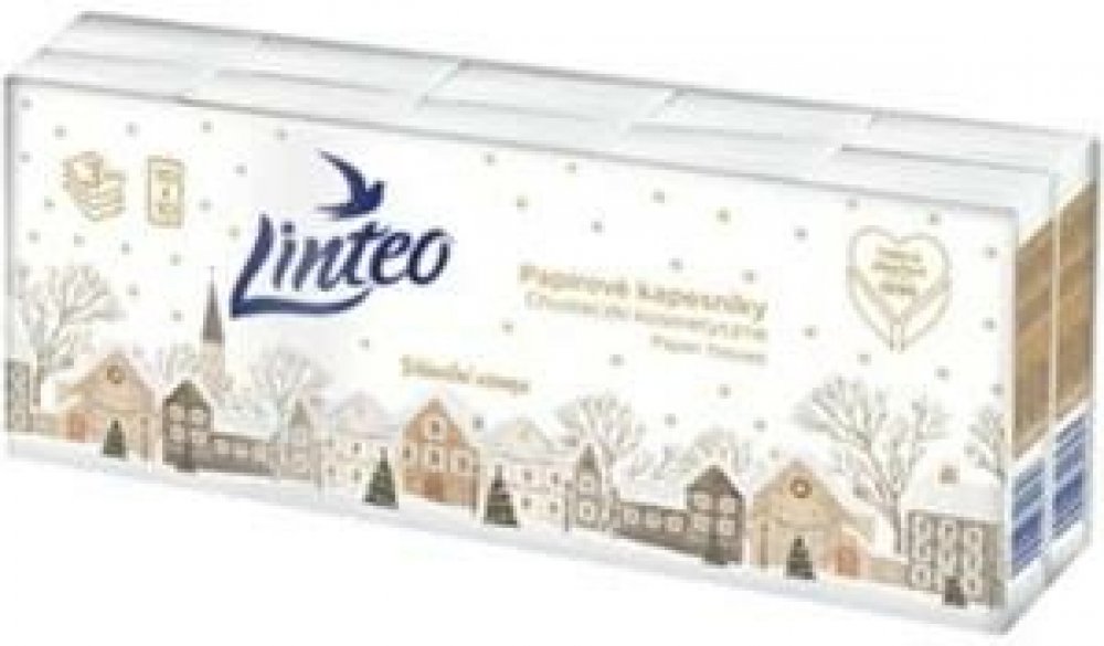 Linteo papírové kapesníčky 10x10 ks 3-vrstvé jsou jemné bílé třívrstvé papírové kapesníky s vánočním aroma. Linteo vám poskytnou jemnost, měkkost a pevnost. Tyto papírové kapesníčky jsou vyrobeny ze 100% celulózy. Balení, které má vánoční aroma, nabízí 10x10 ks.