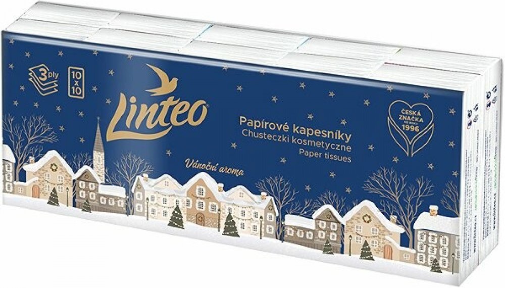 Linteo papírové kapesníčky 10x10 ks 3-vrstvé Den & Noc Vánoční aroma