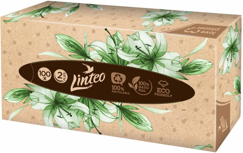 Linteo kapesníky EKO krabička 2-vrstvé 100 ks – jemnost s ohledem na přírodu Linteo kapesníčky v ekologické krabičce přinášejí kombinaci komfortu, kvality a šetrnosti k životnímu prostředí.Jsou vyrobené z jemného, ale pevného dvouvrstvého papíru, který je šetrný k pokožce i přírodě.Praktické balení v EKO krabičce z recyklovaného materiálu se hodí do každé domácnosti, kanceláře i auta. Mějte kapesn...