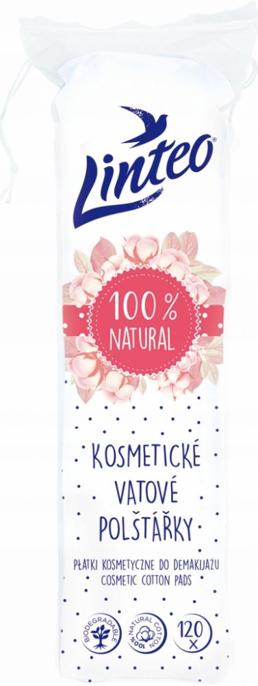 Linteo odličovací tampony jsou kosmetické vatové polštářky složené ze 100 % bavlny a slouží ke kosmetickým účelům. Odličovací polštářky Linteo jsou nabízeny v balení po 100 kusech. Lze použít na odličování a čištění pleti nebo k nanášení pleťového tonika či mléka. Podušky jsou jemné a neuvolňují vlákna.