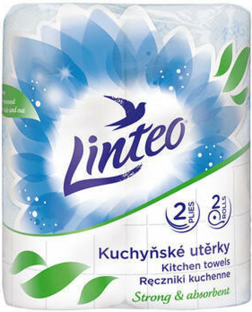 Jemné bílé kuchyňské utěrky Linteo jsou baleny po 2 kusech.