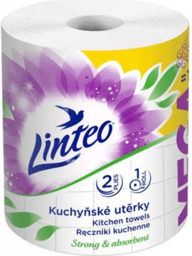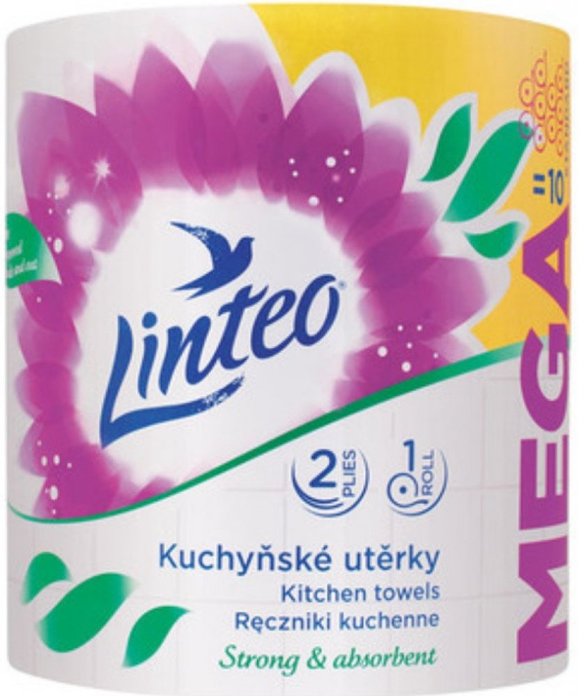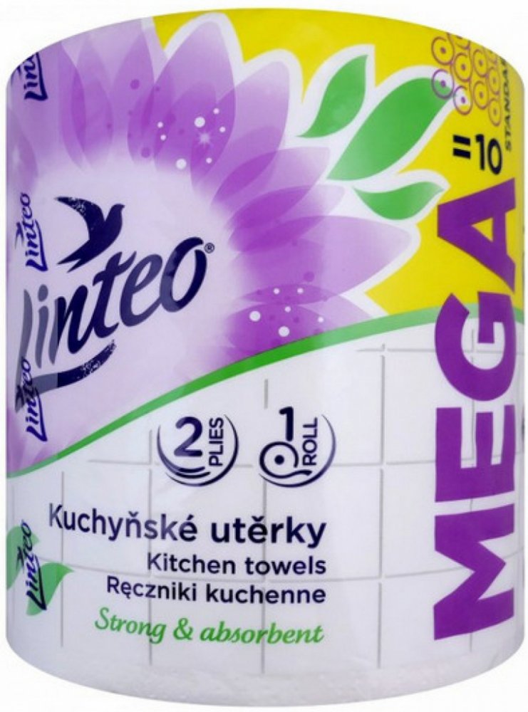 Jemné bílé kuchyňské utěrky Linteo MEGA na velké roli jsou výborným pomocníkem při rychlém úklidu v domácnosti. Jsou pevné a mají vysokou savost. Proto je velmi oceníte např. při grilování, stírání rozlitých tekutin, na cestách autem nebo na kole, v koupelně i v kuchyni. Návin jedné role vyjde jako 10 klasických rolí. Balení je praktické a šetří váš čas i peníze. Papír je vyroben ze 100 % celulózy...