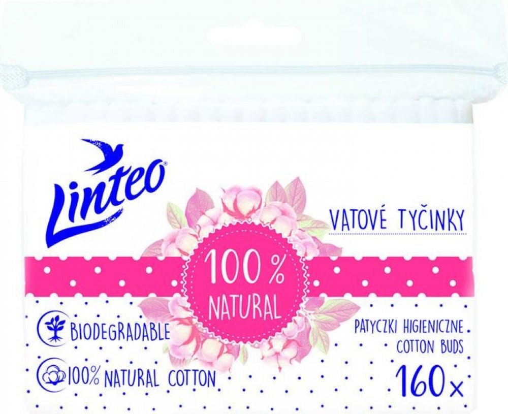 Linteo Papírové Vatové tyčinky 100% natural 160 ks