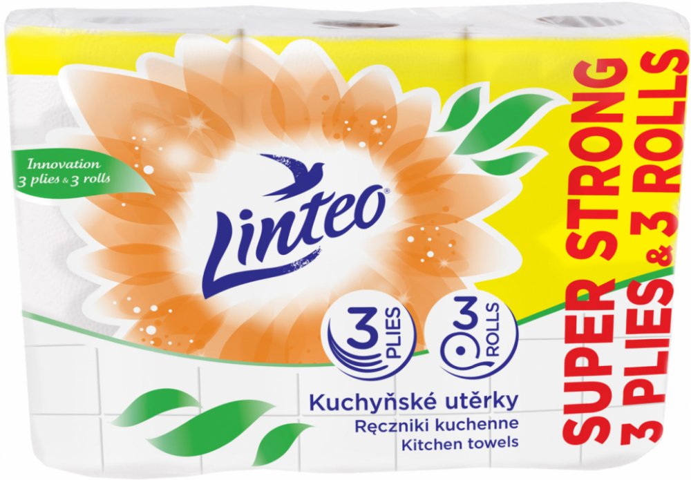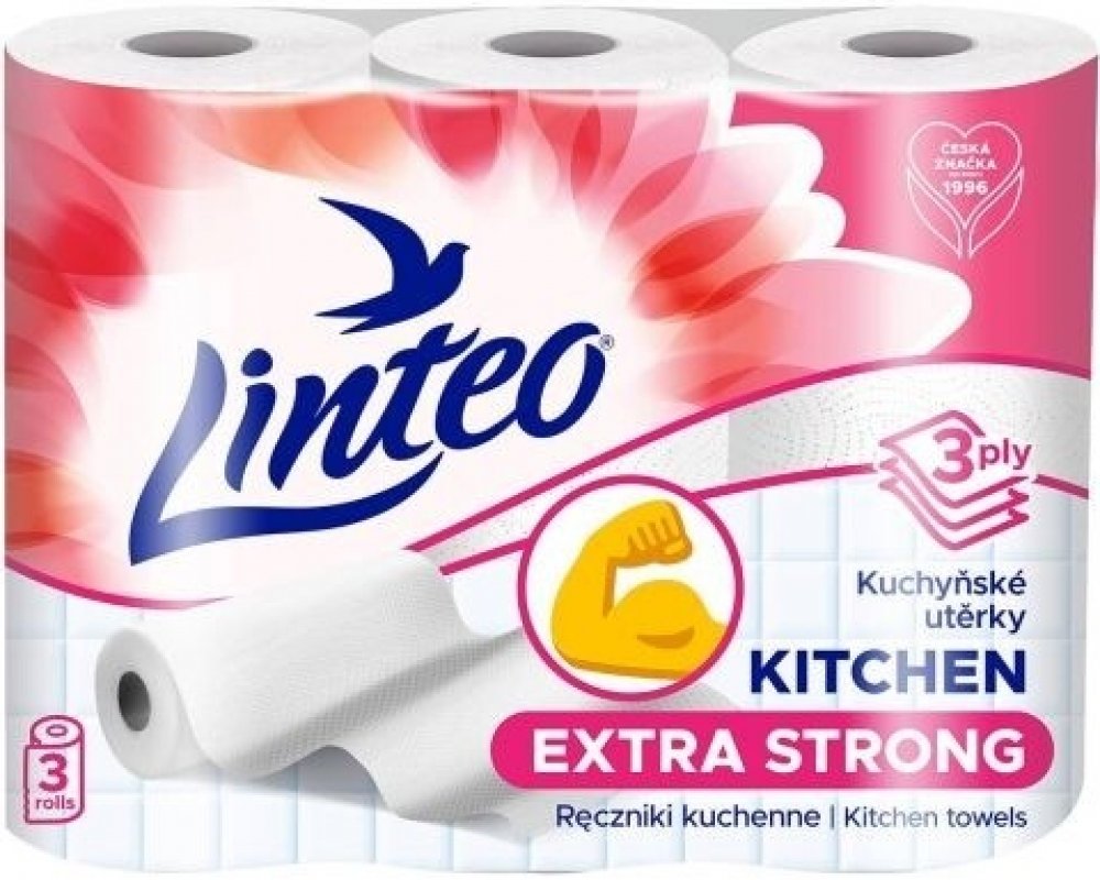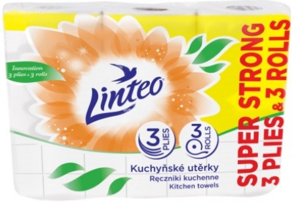 - Jemné bílé kuchyňské utěrky Linteo jsou baleny po 3 kusech a jsou třívrstvé.