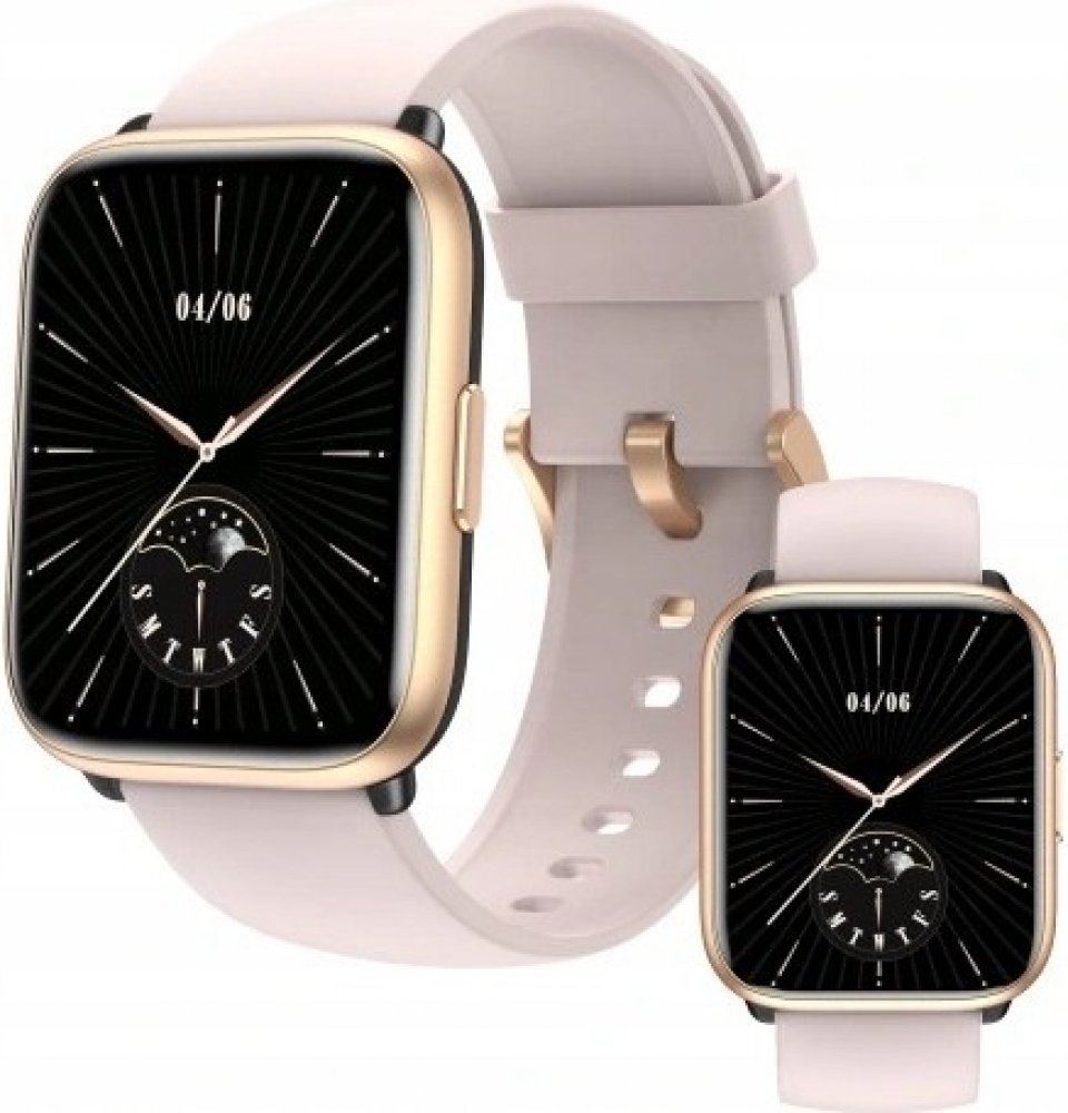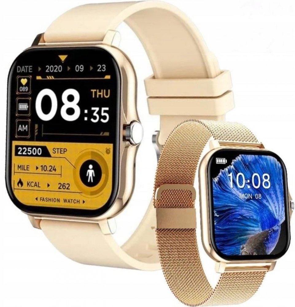 - Chytré Hodinky s elegantním béžovým silikonovým řemínkem a ocelovým náramkem ve zlaté barvě