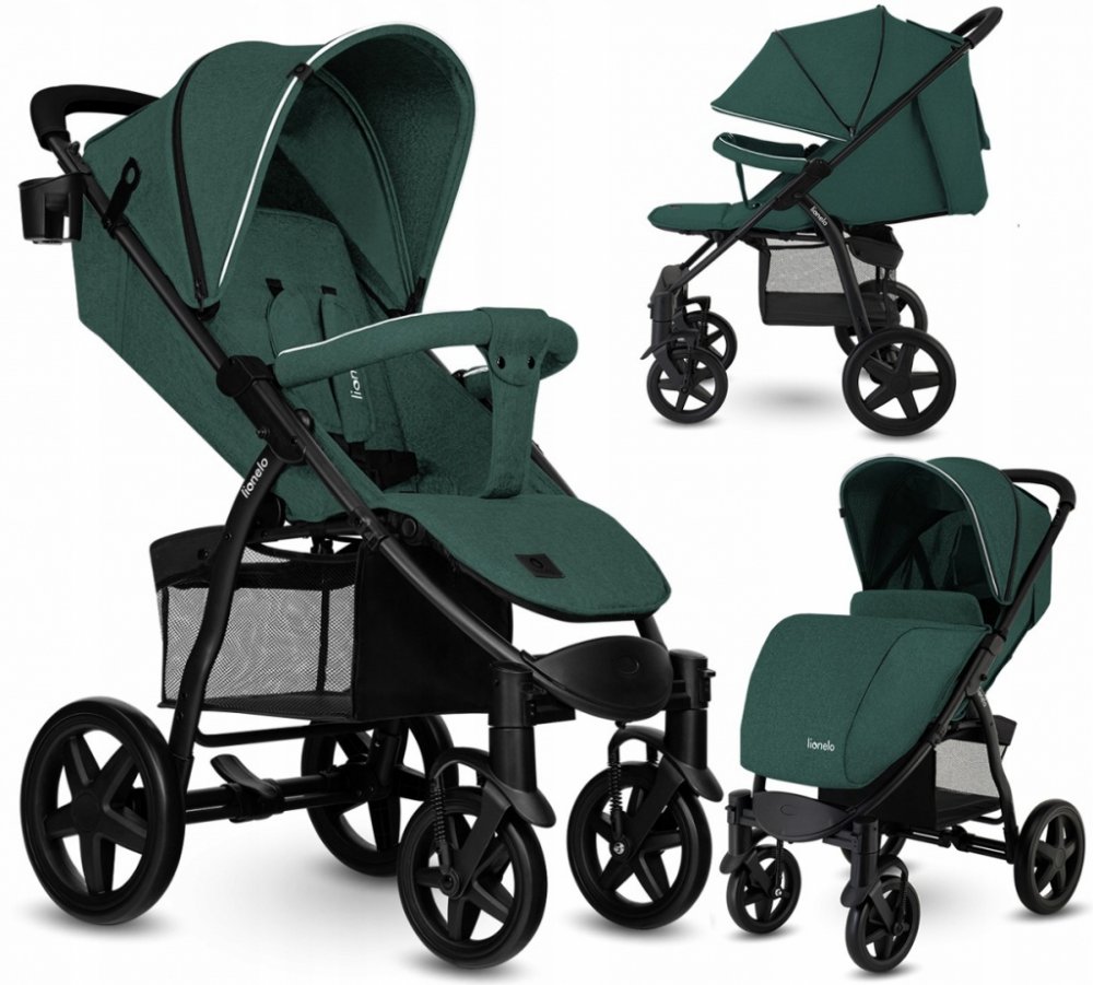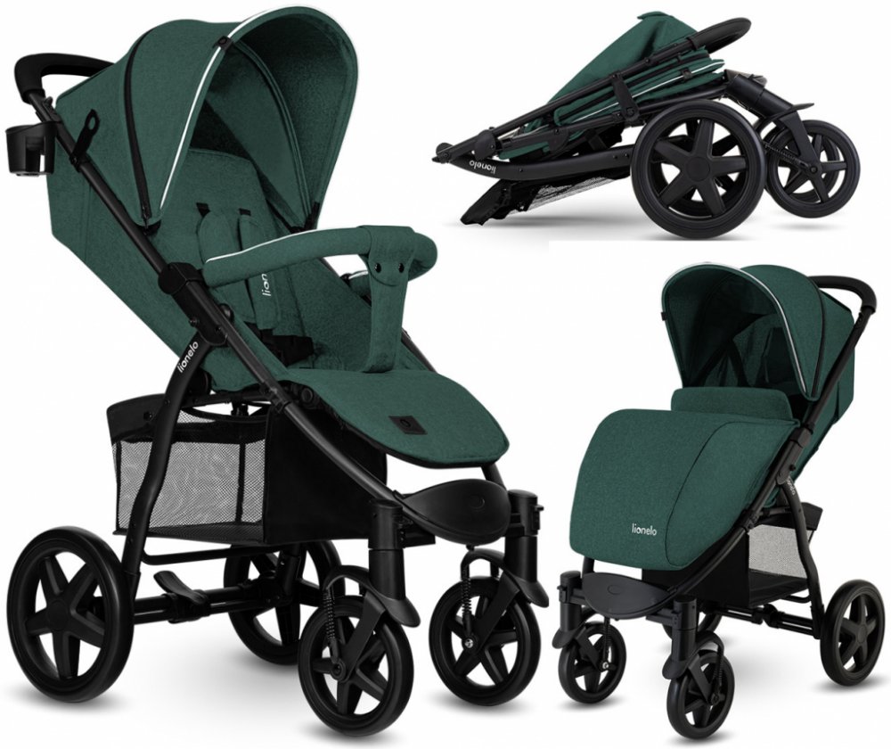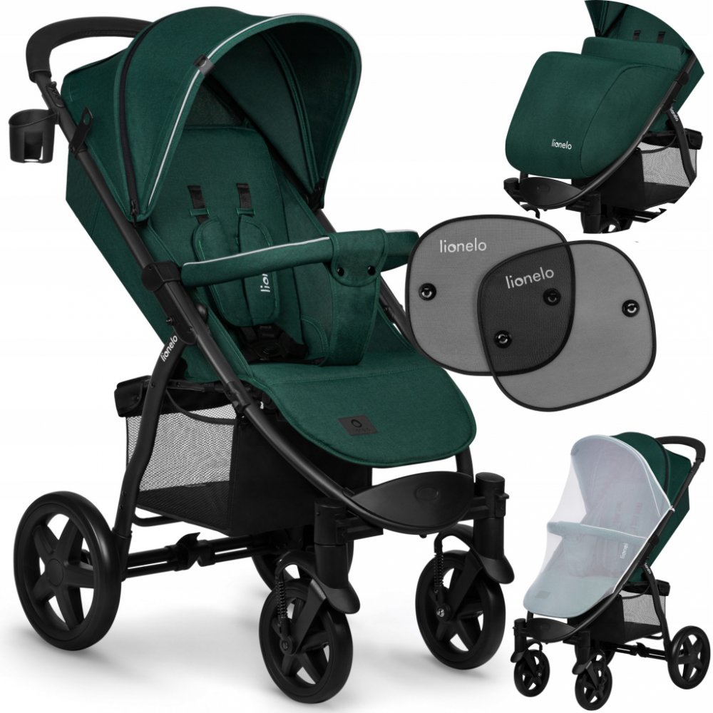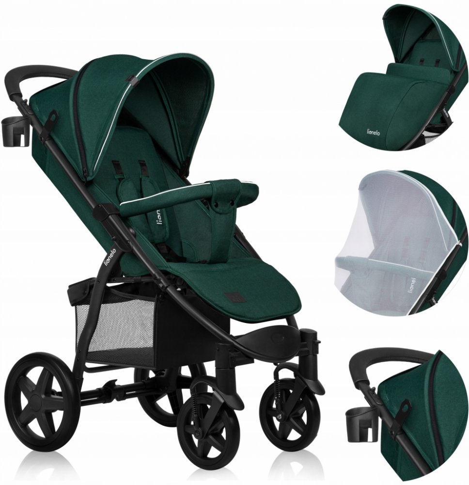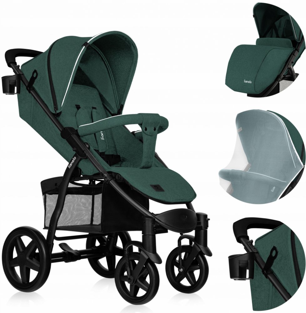 Brandline Group zelené LIONELO unisex sportovní pěnová pro jedno dítě čtyřkolové terénní od narození středně vybavené 11.5 kg 20 cm 28 cm 58 cm 2022 s knihovým skládáním 22 kg s hliníkovým rámem s pětibodovým pásem po směru jízdy teleskopické s vícestupňovým polohováním
