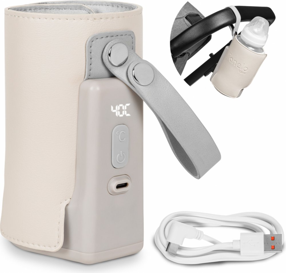 Ohřívač lahví Thermup Go Plus The Thehermup Go Plus bottle warmer je inovativní řešení pro moderní rodiče, kteří chtějí svému dítěti dodat správnou teplotu v jakékoliv době a na jakémkoliv místě.svému dítěti kdykoliv a kdekoliv jeho oblíbené potraviny ve správné teplotě a s plným komfortem. Hlavní vlastnosti: 5 teplotních nastavení na výběr: 38 °C, 40 °C, 42 °C, 45 °C, 50 °C. Ovládací panel s přehledným LCD displejem Zobrazení stavu baterie Termostat a pojistka pro ochranu před přehřátím. Možnost napájení přes napájecí síť, automobilovou zásuvku (zapalovač cigaret a USB) nebo powerbanku Automatická úspora energie - zařízení se vypne po 24 hodinách nepřetržitého provozu. Univerzální průměr: 50-72 cm. Široké zapínání na suchý zip Tichý provoz Smyčka s přítlačným kolíkem pro zavěšení ohřívače lahví, např. na tyč kočárku. Bez obsahu BPA Připojení USB-C Doba nabíjení: až 3 hodiny. Doba provozu: až 8 hodin Hmotnost:Výdrž:3,5 kg: 140 g Rozměry: 60 x 120 x 60 mm. Ideální na cesty Díky ohřívači lahví Thermup Go Plus je cestování s vaším dítětem ještě pohodlnější. Konečně už žádné starosti s tím, jak ohřát dětskou stravu na cestách. Snadno se bere s sebou Tento přenosný přístroj zajišťuje účinný ohřev, takže dětskou stravu můžete vždy podávat při optimální teplotě - kdekoli plánujete jíst. Kompaktní velikost Ohřívač lahví váží pouhých 140 gramů a má rozměry 60 x 120 x 60 mm, takže vám v zavazadle ani v tašce nezabere mnoho místa. LCD displej Přístroj je vybaven jasným a přehledným displejem, který zobrazuje teplotu ohřívaného jídla a stav baterie. Vestavěná dobíjecí baterie Životnost baterie ohřívače lahví je až 8 hodin a nabíjení probíhá prostřednictvím drátové baterie.b>standardního portu USB-C, který lze pomocí napájecího kabelu připojit k síti, powerbance nebo zásuvce automobilu. Bezpečné pro dítě Ohřívač lahví Thermup Go Plus má nejen zabudovaný termostat, ale také pojistku, která chrání zařízení před přehřátím. Neobsahuje škodlivé látky Ohřívač lahví Thermup Go Plus je vyroben z materiálů, které jsou bezpečné pro děti, neobsahují BPA a splňují normy ROHS. Tichý provoz Ohřívač lahví Thermup Go Plus nevydává žádný hluk při spouštění nebo zastavení procesu ohřevu jako běžné domácí spotřebiče, takže neruší klid dítěte.