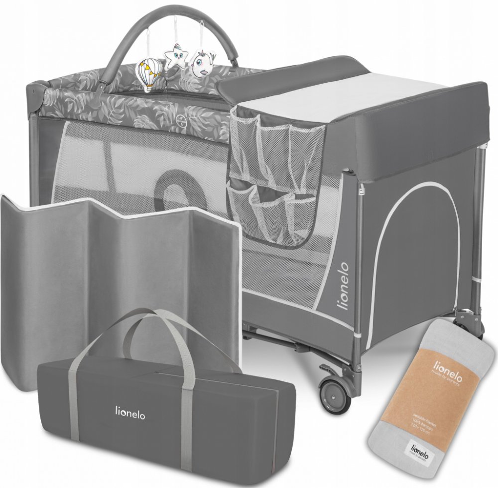 Lionelo Cestovní postýlka Flower Grey Stone