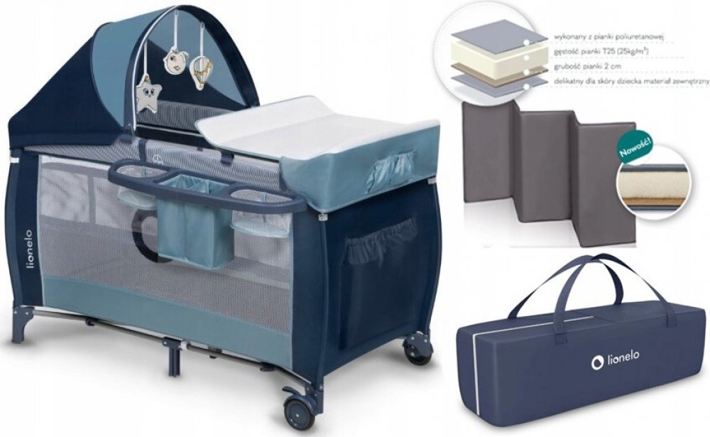 Lionelo Cestovní postýlka Sven Plus Blue Navy